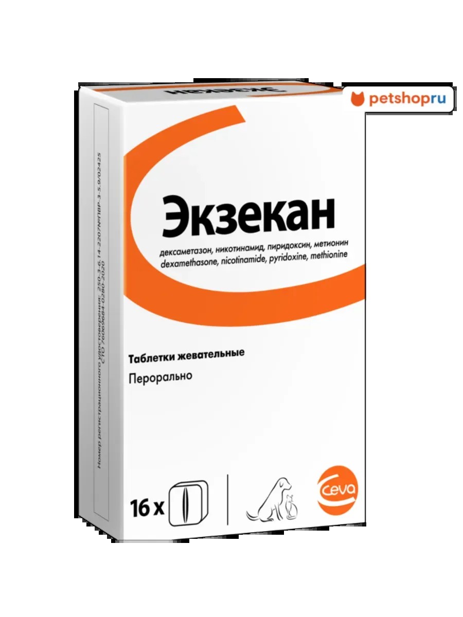 Экзекан (Eczekan) - препарат для лечения кожных заболеваний у кошек и собак . Для лечения острых и хронических дерматитов и экзем небактериальной и непаразитарной этиологии у собак и кошек.
