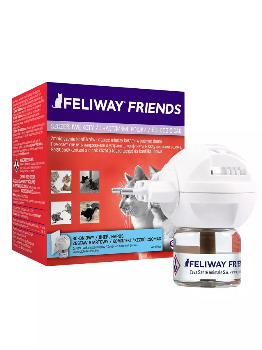 Feliway Friends is a product specifically designed to help cats live in harmony and reduce potential conflicts in the home. It contains an analogue of the feline calming pheromone (FCP), which is released by mother cats after the birth of their kittens and helps create a calm atmosphere between them. Feliway Friends mimics this pheromone, reducing stress and tension among adult cats in the home. When used in conjunction with other behavioral modification methods, Feliway Friends can significantly improve interactions between cats living in the same home.