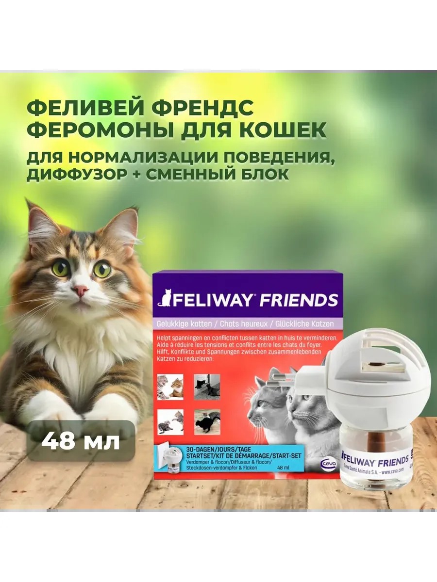| Комплектация | Феливей (Ceva FELIWAY) Френдс - Феромон для кошек ( диффузор+сменный блок 48мл ) - 1 шт |