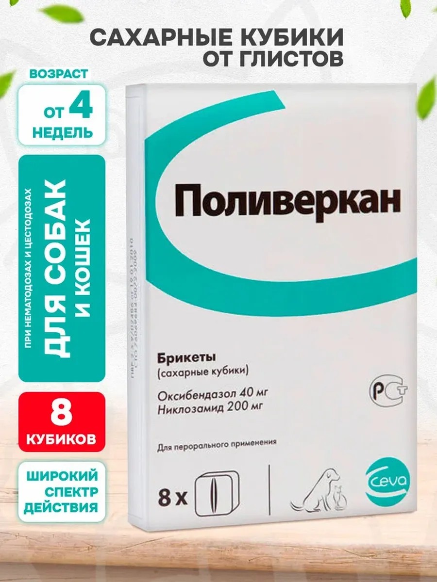Ceva Поливеркан кубики сахарные от глистов для собак и кошек 8 шт