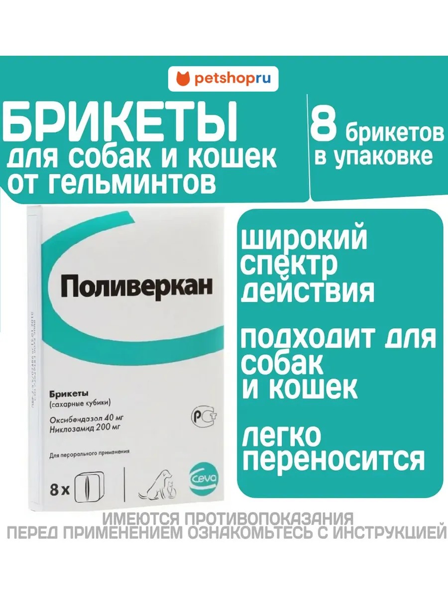 Противопоказания: Нет. Поливеркан можно давать собакам и кошкам даже в период течки и во время беременности.