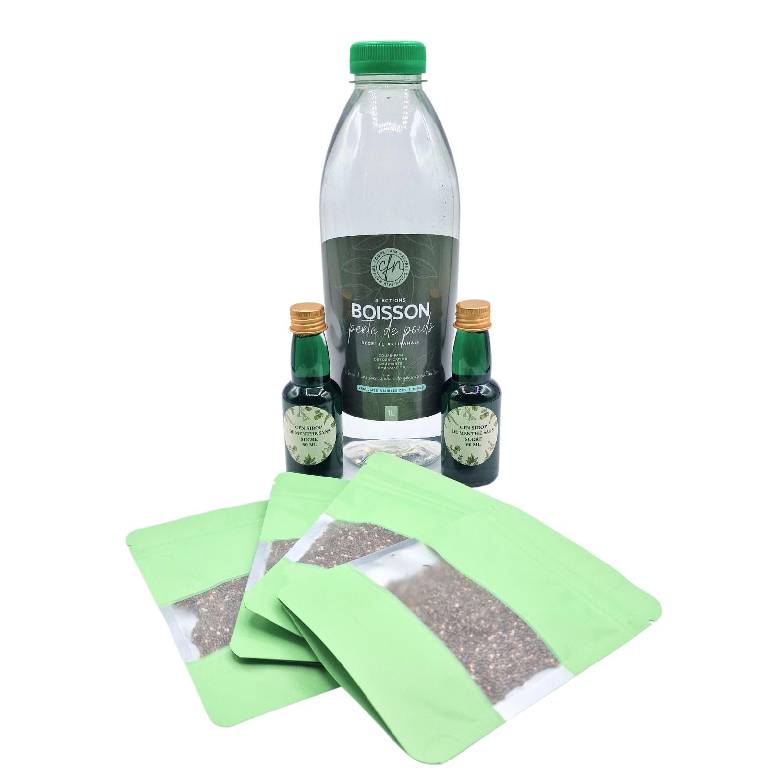 NATURAL WEIGHT LOSS FAT BURNER: Enjoy healthy weight loss with our drink made with natural and powerful ingredients. Formulated to promote digestion, burn fat, and contribute to a flat stomach, it is ideal for anyone wishing to improve their well-being without chemicals or artificial additives. Available in flexible formats: 7, 14 or 30 days. INGREDIENTS Chia seeds, syrupNATURAL AND ADDITIVE-FREE FORMULATION: Made from chia seeds (Salvia hispanica) and natural CFN syrups, our drink is laboratory tested and approved in France. Enjoy a refreshing and effective taste experience, with no added sugar (syrup of your choice) and without compromising on quality. A safe drink for pregnant or breastfeeding women, and ideal for anyone who wants to take care of their health naturally. ENERGY SUPPORT AND SPORTS PERFORMANCE: Our detox drink also acts as a natural energy booster. It improves your endurance, making it an ideal supplement before, during, or after your workouts. Perfect for athletes looking to combine performance and weight management, while staying hydrated in a healthy way. IMPROVES DIGESTION AND REDUCES BLOATING: With its natural fiber content and soothing properties, our drink helps improve digestion, reduces bloating, and contributes to a flatter stomach. Enjoy a feeling of lightness and better assimilation of nutrients for increased overall well-being every day. DETOX EFFECT AND APPETITE REGULATION: This slimming drink is your ally to purify the body and reduce cravings for snacking. Thanks to its diuretic and appetite suppressant properties, it eliminates toxins while helping you control your appetite. Say goodbye to cravings and find a balanced diet naturally, without gastric pain or discomfort. NATURAL WEIGHT LOSS FAT BURNER: Enjoy healthy weight loss with our drink made from natural and powerful ingredients. Formulated to promote digestion, burn fat, and contribute to a flat stomach, it is ideal for anyone wishing to improve their well-being without chemicals or artificial additives. Treatment available in flexible formats: 7, 14 or 30 days. PERTE DE POIDS NATURELLE BRULE-GRAISSE : Profitez d'une perte de poids saine avec notre boisson élaborée à partir d'ingrédients naturels et puissants. Formulée pour favoriser la digestion, brûler les graisses, et contribuer à un ventre plat, elle est idéale pour toute personne souhaitant améliorer son bien-être sans produits chimiques ou additifs artificiels. Cure disponible en formats flexibles : 7, 14 ou 30 jours. INGRÉDIENTS Graines de chia, siropFORMULATION NATURELLE ET SANS ADDITIFS : Elaborée à partir de graines de chia (Salvia hispanica) et de sirops CFN naturels, notre boisson est testée et approuvée en laboratoire en France. Profitez d'une expérience gustative rafraîchissante et efficace, sans sucre ajouté (sirop au choix) et sans compromis sur la qualité. Une boisson sûre pour les femmes enceintes ou allaitantes, et idéale pour tous ceux qui veulent prendre soin de leur santé de manière naturelle. SOUTIEN A L'ÉNERGIE ET PERFORMANCE SPORTIVE : Notre boisson détox agit également comme un booster d'énergie naturel. Elle améliore votre endurance, ce qui en fait un complément idéal avant, pendant ou après vos entraînements. Convient parfaitement aux sportifs cherchant à allier performance et gestion de poids, tout en restant hydraté de manière saine. AMELIORATION DE LA DIGESTION ET REDUCTION DES BALLONNEMENTS : Avec sa teneur en fibres naturelles et ses propriétés apaisantes, notre boisson aide à améliorer la digestion, réduit les ballonnements et contribue à un ventre plus plat. Profitez d'une sensation de légèreté et d'une meilleure assimilation des nutriments pour un bien-être général accru au quotidien. EFFET DETOX ET REGULATION DE L'APPETIT : Cette boisson minceur est votre alliée pour purifier l'organisme et réduire les envies de grignotage. Grâce à ses propriétés diurétiques et coupe-faim, elle élimine les toxines tout en vous aidant à contrôler votre appétit. Dites adieu aux fringales et retrouvez un équilibre alimentaire naturellement, sans douleurs ni gênes gastriques. PERTE DE POIDS NATURELLE BRULE-GRAISSE : Profitez d'une perte de poids saine avec notre boisson élaborée à partir d'ingrédients naturels et puissants. Formulée pour favoriser la digestion, brûler les graisses, et contribuer à un ventre plat, elle est idéale pour toute personne souhaitant améliorer son bien-être sans produits chimiques ou additifs artificiels. Cure disponible en formats flexibles : 7, 14 ou 30 jours.