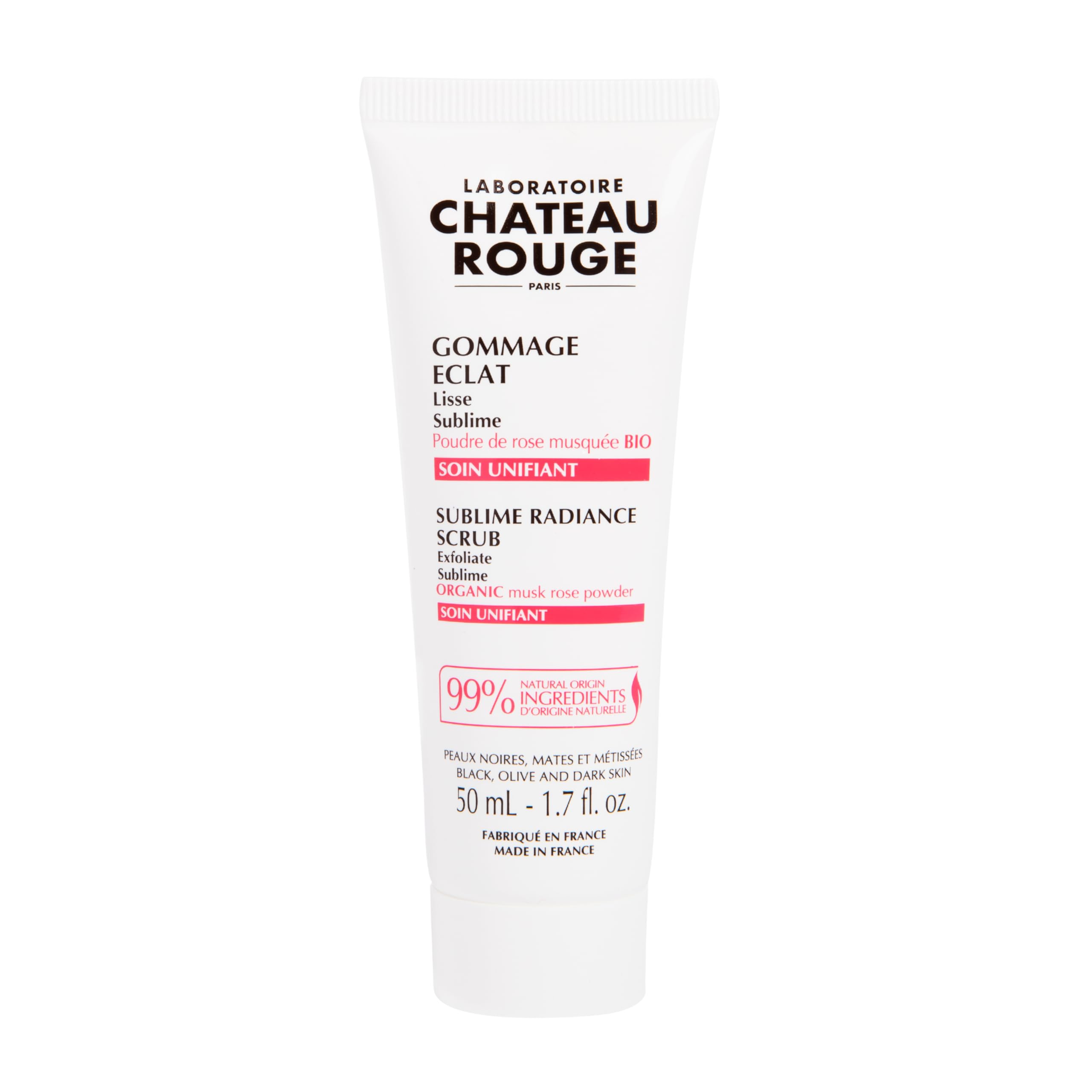 The facial radiance scrub will eliminate all the imperfections in your skin and make your complexion fresh, luminous and perfectly even. Apply the scrub 1 to 2 times a day to perfectly cleansed and slightly damp face and neck. Massage gently using circular movements then rinse with water. Avoid the eye area. ORGANIC ROSEHIP POWDER This ORGANIC Rosehip seed powder is a gentle and effective exfoliating agent. It deeply cleanses your skin and facilitates the elimination of dead cells, making your complexion brighter. ORGANIC SHEA BUTTER Rich in vitamins A, D, E and F, shea butter hydrates, softens and softens for silky skin in all seasons. ORGANIC DEODORIZED SESAME OIL Regenerating, sesame oil acts effectively on flaking and dry skin prone to discomfort. Softening, it maintains good hydration of the skin while penetrating easily. SUNFLOWER SEED OIL "Healthy glow" effect: sunflower oil gives radiance to dull and tired skin. Softening and softening: this golden oil brings softness and suppleness to the skin. BROWN ALGAE CALLED "SEA FERN" It helps regulate melanogenesis and helps lighten pigment spots. It also softens the skin and stimulates the production of collagen. 99 ingredient of natural origin, PARABEN-FREE, PHENOXYETHANOL-FREE 50 ML TUBE DIRECTIONS FOR USE Apply the scrub 1 to 2 times a day to perfectly cleansed and slightly damp face and neck. Massage gently using circular movements then rinse with water. Avoid the eye area. SAFETY WARNING Avoid the eye area. In case of contact with eyes, rinse thoroughly with clean water. MADE IN FRANCE: Product carefully designed in France, guaranteeing excellent quality and know-how. 99 NATURAL INGREDIENTS: Formulated without parabens or phenoxyethanol, to respect your skin and the environment. ? BRIGHT COMPLEXION: Brown algae helps reduce pigment spots for a more even and luminous complexion. HYDRATES, NOURISHES AND ERASES IMPERFECTIONS: Enriched with organic shea butter and sesame oil, it moisturizes, nourishes and softens your skin for a velvety feel. GENTLE SCRUB: Made with organic rosehip powder, this scrub gently removes dead cells for smooth and radiant skin. Le gommage éclat visage va éliminer toutes les imperfections de votre peau et rendre votre teint frais, lumineux et parfaitement unifié. Appliquer le gommage 1 à 2 fois par jour sur le visage et le cou parfaitement nettoyés et légèrement humides. Masser doucement en effectuant des mouvements circulaires puis rincer à l'eau. Eviter le contour des yeux. POUDRE DE ROSE MUSQUÉE BIO Cette poudre de graines de Rose musquée BIO est un agent exfoliant doux et efficace. Elle nettoie votre peau en profondeur et facilite l'élimination des cellules mortes, rendant votre teint plus lumineux. BEURRE DE KARITÉ BIO Riche en vitamines A, D, E et F, le beurre de karité hydrate, assouplit et adoucit pour une peau soyeuse en toutes saisons. HUILE DE SÉSAME DÉSODORISÉE BIO Régénérante, l'huile de sésame agit efficacement sur les desquamations et les peaux sèches, sujettes à inconfort. Assouplissante, elle maintient la bonne hydratation de la peau tout en pénétrant facilement. HUILE DE GRAINES DE TOURNESOL Effet « bonne mine » : l'huile de tournesol donne de l'éclat aux peaux ternes et fatiguées. Adoucissante et assouplissante : cette huile dorée apporte douceur et souplesse à la peau. ALGUE BRUNE APPELÉE " FOUGÈRE DES MERS " Elle contribue à réguler la mélanogénèse et permet d'éclaircir les taches pigmentaires. Elle assouplie, par ailleurs, la peau et stimule la fabrication de collagène. 99 d'ingrédient d'origine naturelle, SANS PARABEN, SANS PHENOXYETHANOL TUBE DE 50 ML MODE D'EMPLOI Appliquer le gommage 1 à 2 fois par jour sur le visage et le cou parfaitement nettoyés et légèrement humides. Masser doucement en effectuant des mouvements circulaires puis rincer à l'eau. Eviter le contour des yeux. AVERTISSEMENT DE SÛRETÉ Evitez le contour des yeux. En cas de contact avec les yeux rincer abondamment à l'eau clair. MADE IN FRANCE : Produit conçu avec soin en France, garantissant une qualité et un savoir-faire d'excellence. 99 D'INGRÉDIENTS D'ORIGINE NATURELLE : Formulé sans parabens ni phénoxyéthanol, pour respecter votre peau et l'environnement. ? TEINT LUMINEUX : L'algue brune aide à réduire les taches pigmentaires pour un teint plus uniforme et lumineux. HYDRATE, NOURRIT ET GOMME LES IMPERFECTIONS : Enrichi en beurre de karité BIO et huile de sésame, il hydrate, nourrit et adoucit votre peau pour un toucher velouté. GOMMAGE DOUCEUR : À base de poudre de rose musquée BIO, ce gommage élimine en douceur les cellules mortes pour une peau lisse et éclatante.