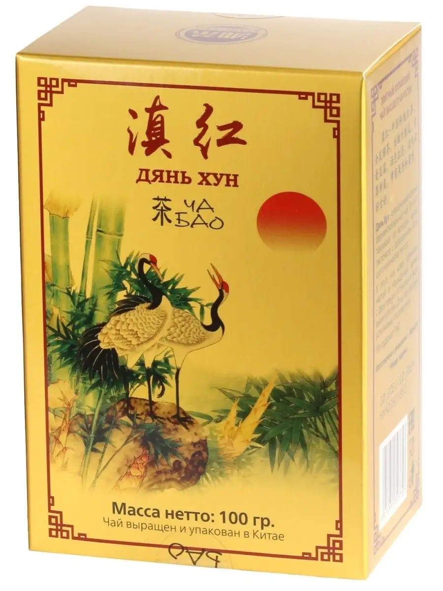 Дян Хун - красный ферментированный китайский листовой чай (по российской классификации черный чай). Чай изготавливают из молодых чайных листочков с добавлением типсов. У этого чая яркий рубиновый настой и насыщенный аромат с фруктовыми оттенками и медовыми нотками. Дянь Хун обладает устойчивым послевкусием. Производитель и упаковщик чая - чайная компания Хунань Ти Групп, Китай, провинция Хуннань.Состав: Журавль в Китае - символ молодости и долголетия. Пара журавлей считается символом гармоничной и счастливой семейной жизни. Бамбук символизирует счастье и удачу, а изображенный вместе с журавлем, он олицетворяет долгую жизнь, наполненную радостью. Имея крепкий, но гибкий стебель, бамбук стал также символом стойкости, выносливости, мудрости и духовной силы. чай ТМ "Ча Бао" Дян Хун укрепляет здоровье и продлевает молодость.