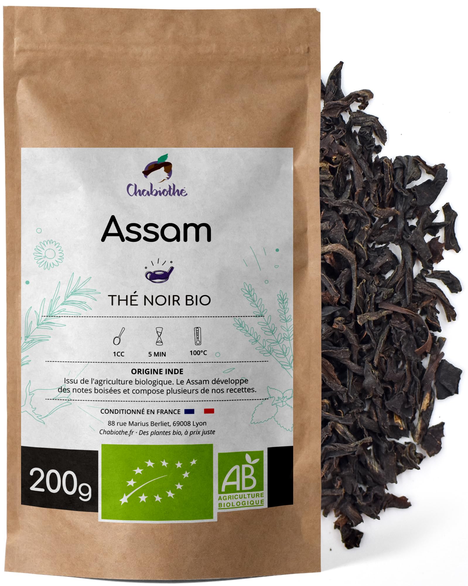 Chabiothé - Thé noir Assam Bio 200g - conditionné en France - sachet biodégradable 200 g (Lot de 1)