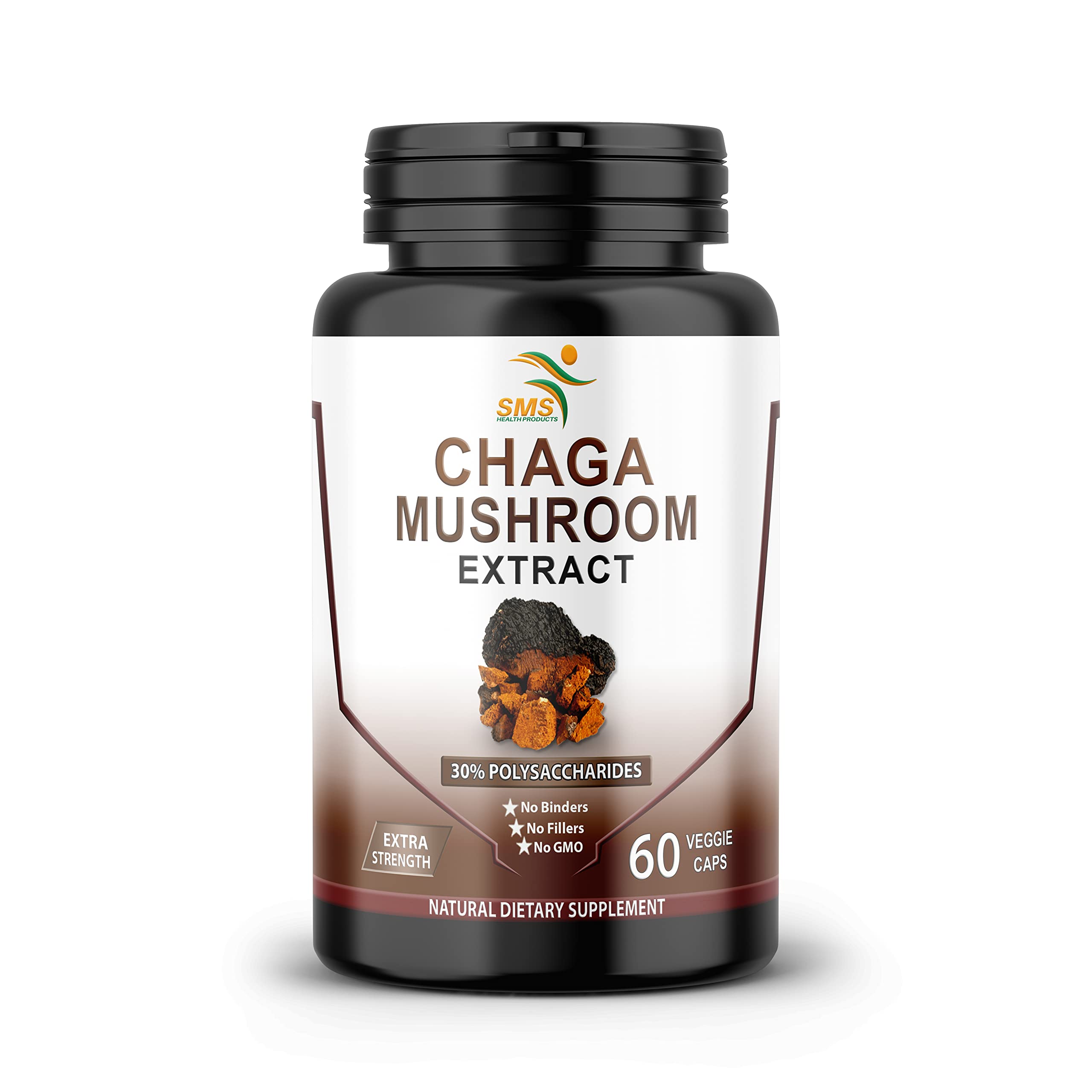 Chaga Mushroom Capsules 30% Polysaccharides - Organic Mushroom Supplement with Chaga Extract for Energy Digestion & Immune Support - Non-GMO 60 Veggie Caps