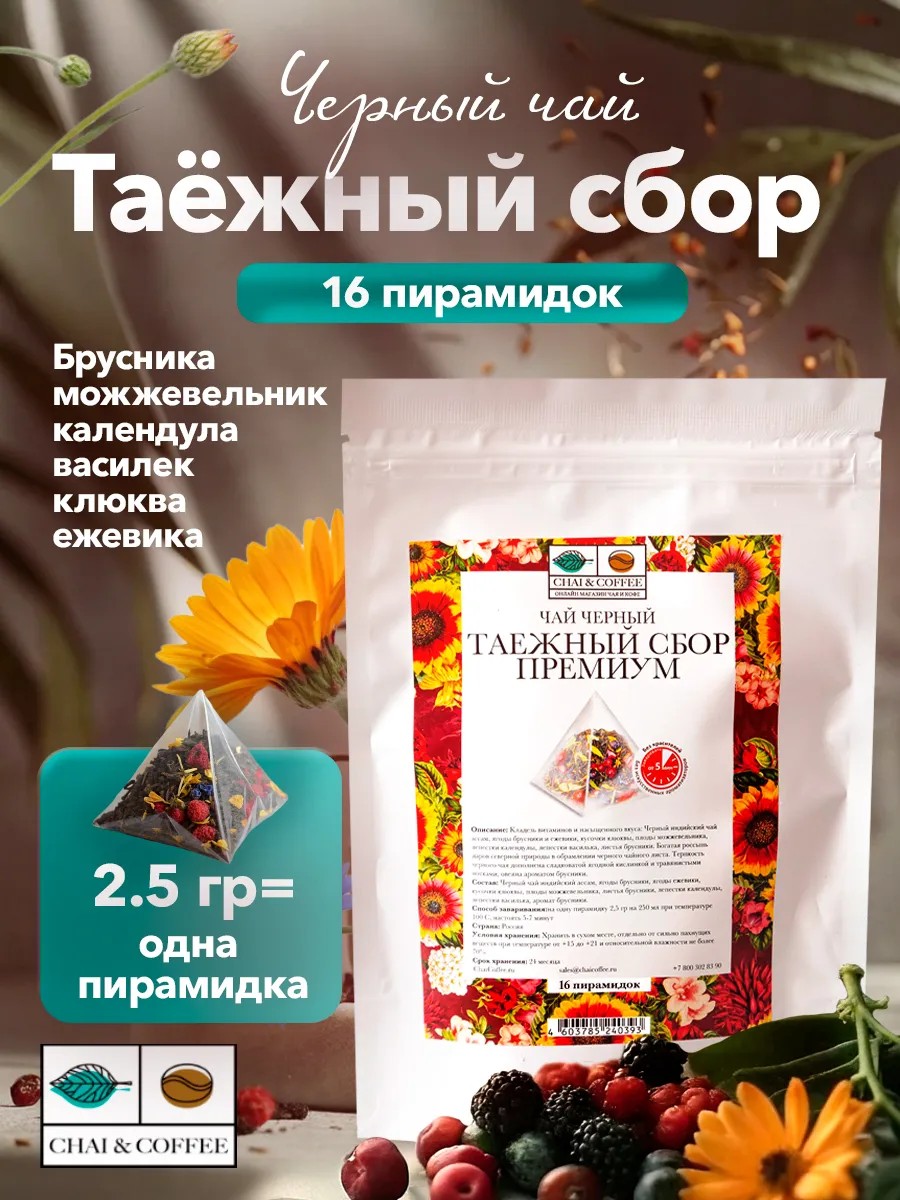 CHAI&COFFEE Чай черный Таежный сбор 16 пирамидок по 2,5 г