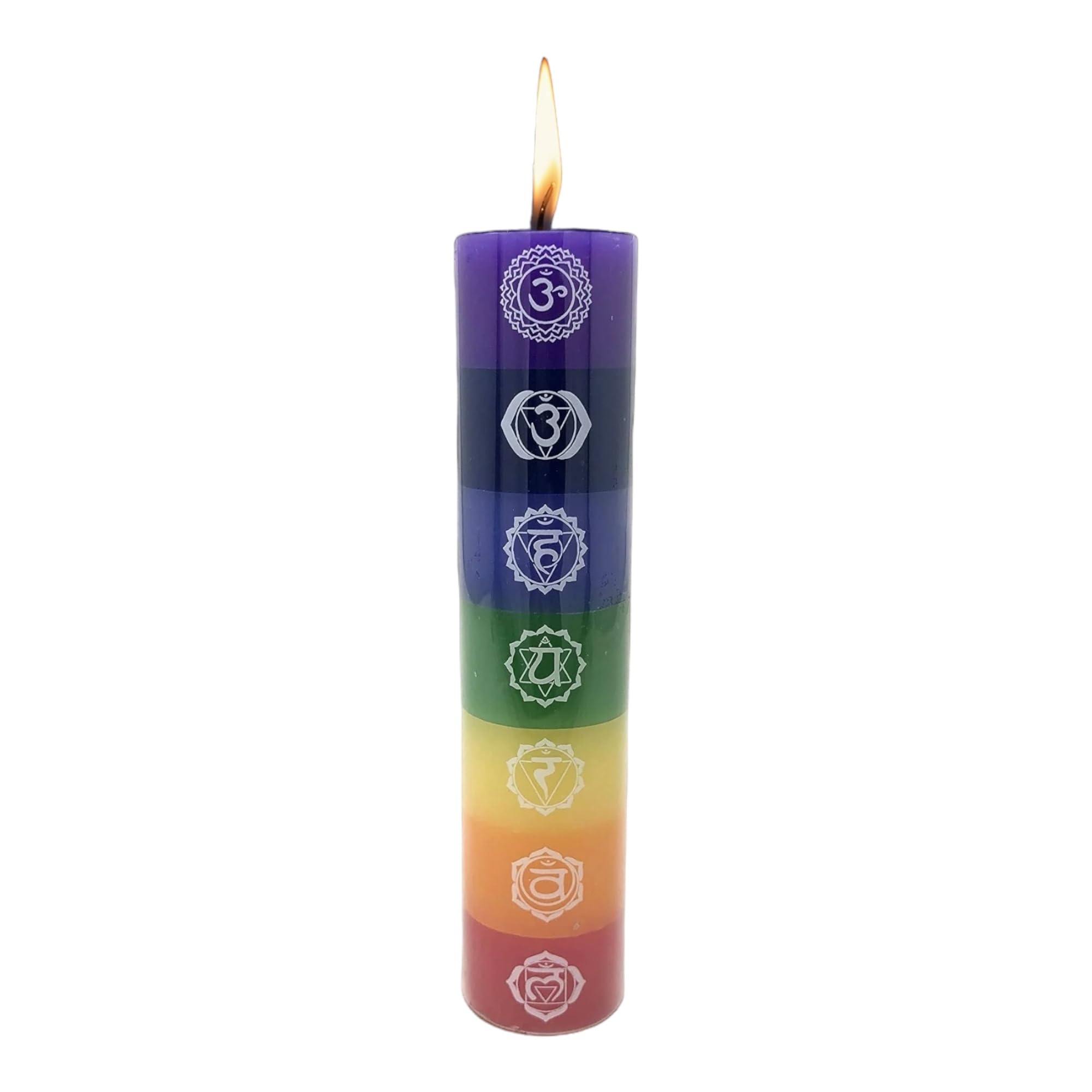 Chakra Candle, 7 Symbols, Multi-Color, 9 Inches