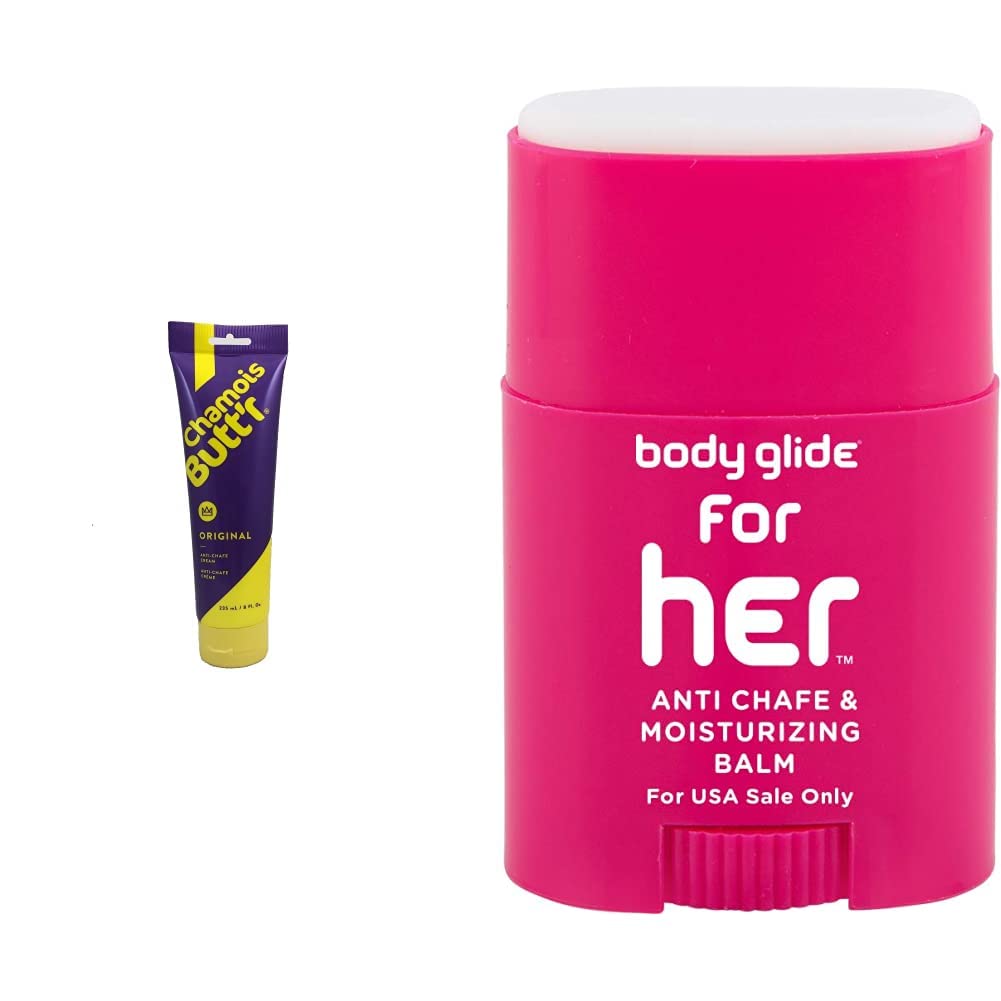 Chamois Butt'r Original Anti-Chafe Cream (8 oz tube) and Body Glide For Her Anti Chafe Balm (0.8oz)