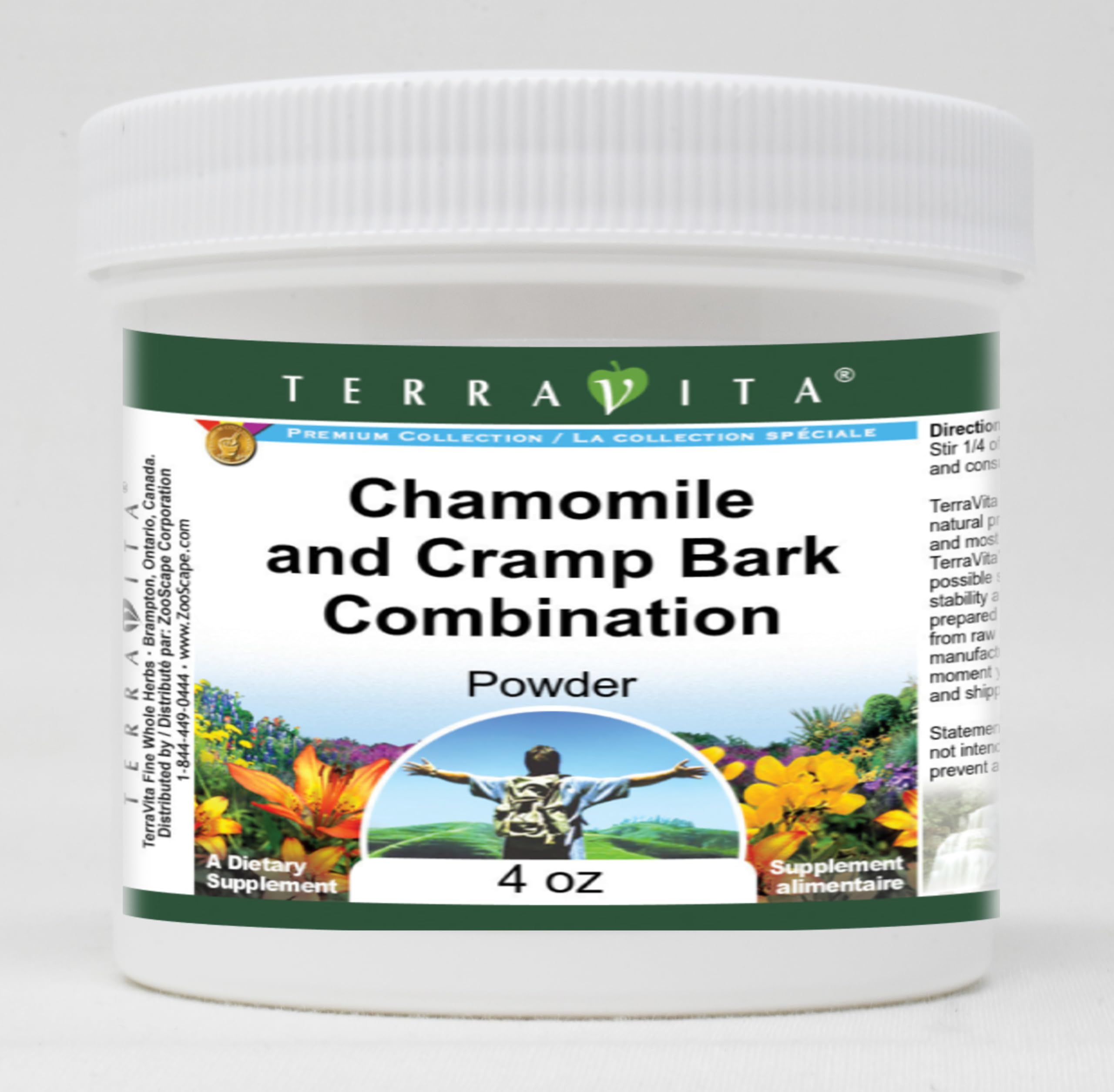 Chamomile and Cramp Bark Combination Powder (4 oz, ZIN: 513942) Packaged in the United States in a GMP certified facility (Good Manufacturing Practice). No fillers. Manufacturer: TerraVita Size: 4 oz Convenient Powder format. Ingredients: Chamomile Flower, Cramp Bark (Viburnum)