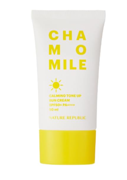 Chamomile Calming Tone-Up Sun Cream SPF50+ PA++++ Made in Korea Pink Tone-Up Non-Sticky with Chamomile Flower Oil