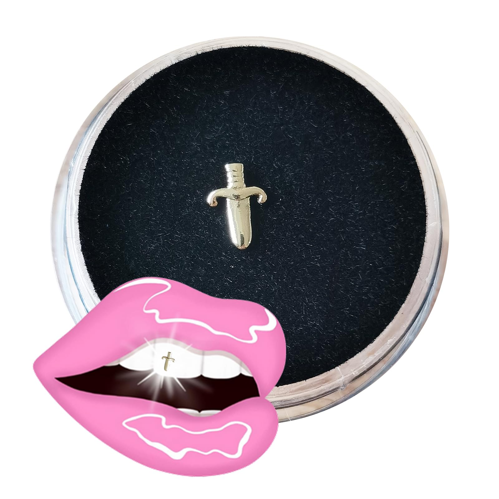 [Versatile Unique Gift]: A standout accessory for music festivals, photo shoots, or daily streetwear. This real gold dagger tooth gem is a unique gift for those who love hip-hop culture, alternative fashion, or luxury dental art. [High-Mirror Polished Finish]: Each piece is polished to a mirror-like shine, reflecting light brilliantly to enhance your smile. The non-porous, smooth surface is designed for hygiene and easy bonding by dental professionals or DIY enthusiasts. [Micro-Precision Size]: Designed specifically for dental application, this tiny gold blade is lightweight and ultra-thin. Its sleek, flat-back design and smooth, hand-polished edges ensure a comfortable, seamless fit against the tooth surface without irritating the lips. [Bold Dagger Aesthetic]: Features a meticulously detailed dagger sword silhouette, symbolizing strength and individuality. This edgy, Gothic-inspired design is the perfect statement piece to personalize your smile with a high-end, rebellious touch. [Genuine 8K Solid Gold]: Expertly crafted from authentic 8K solid gold . Unlike gold-plated alternatives, this 8K gold dagger gem offers superior durability and hardness, ensuring it maintains its sharp detail and brilliant luster for long-term wear.