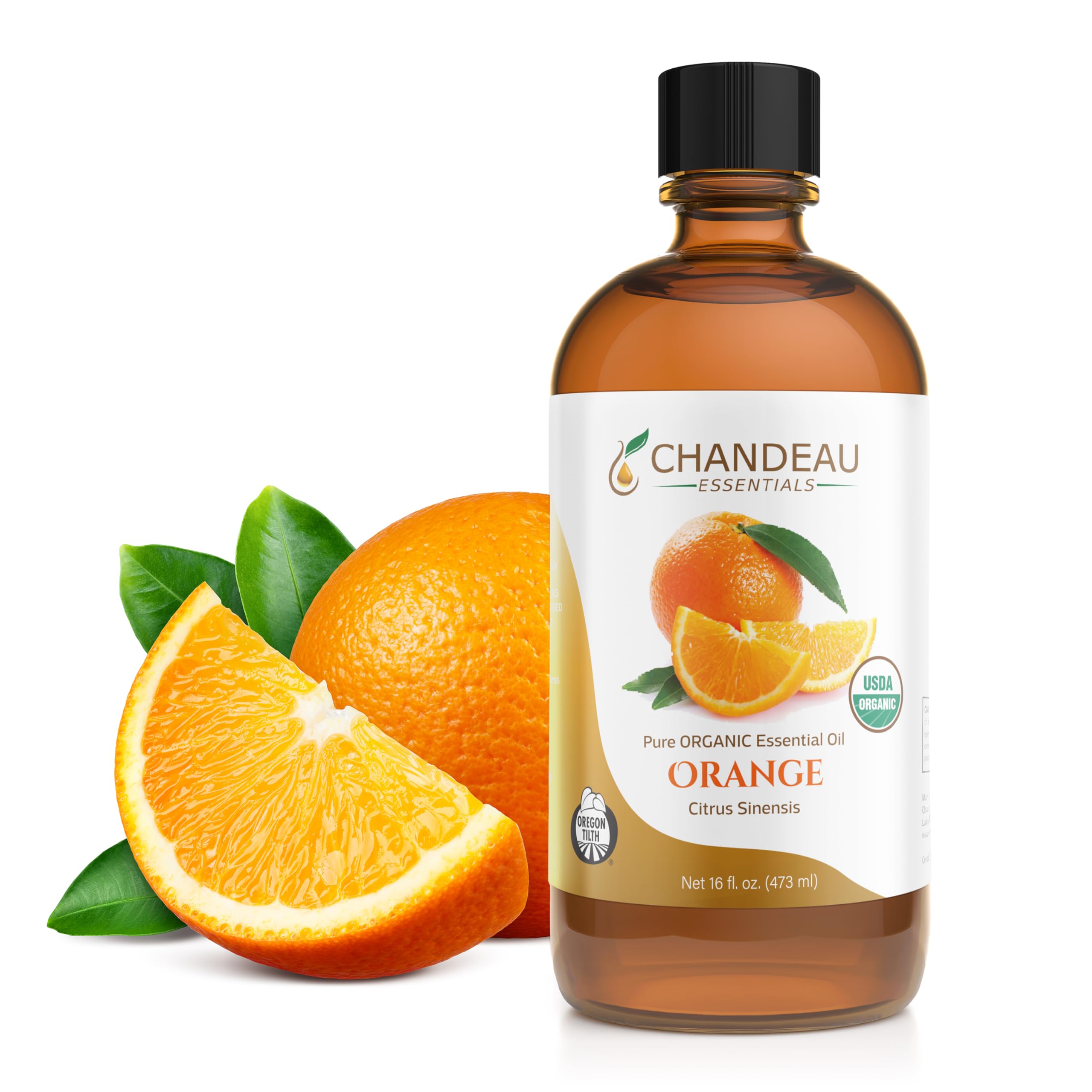 Chandeau Essentials 100% Pure Organic Essential Oil Pure Orange Essential Oil for Aromatherapy Soap Making Candles Laundry Perfume Cleaners or Diffusers - Large Amber Glass Bottle 16 oz.