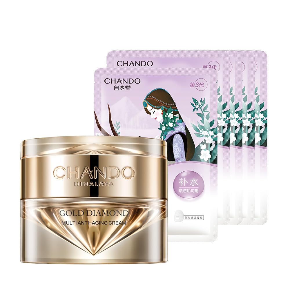 CHANDO HIMALAYA Gold Diamond Multi Anti-aging Cream (55g/1.94oz) - Comfrey Pore-Tightening Sheet Mask (26mlx5PCS) Skincare Set