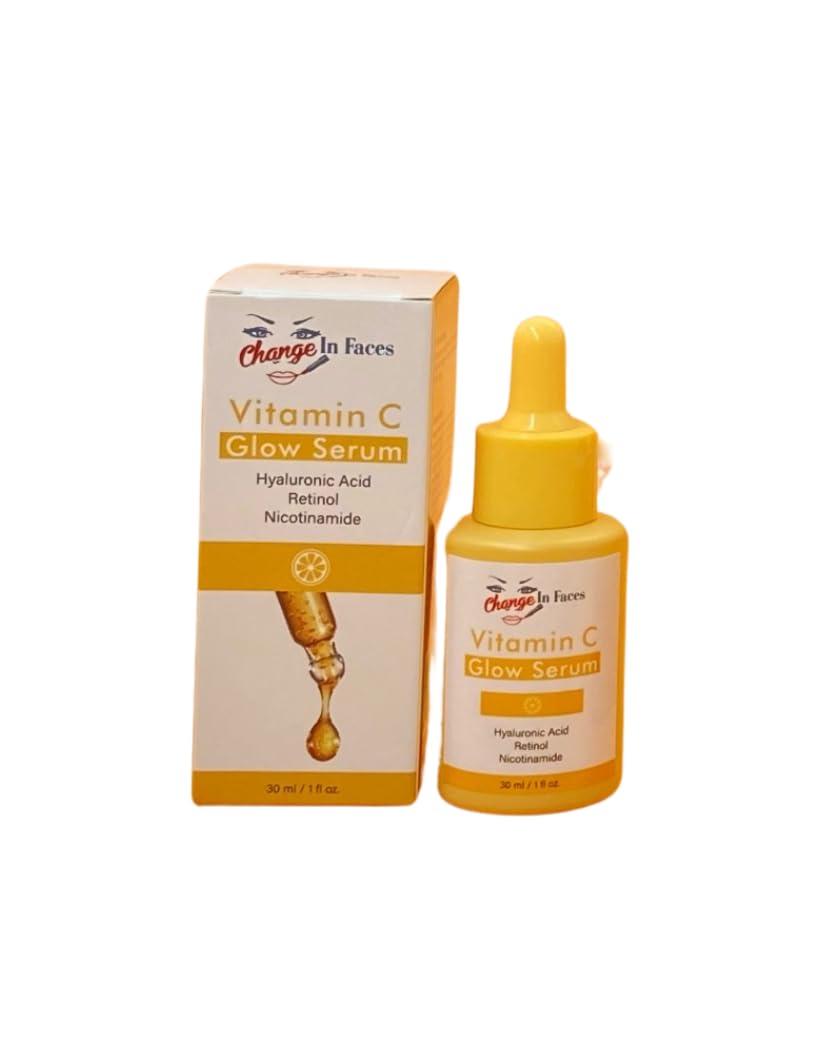 Unlock a radiant, glowing complexion with the Vitamin C Glow Serum from Change In Faces. This potent serum harnesses the power of Hyaluronic Acid, Retinol, and Nicotinamide to deeply nourish and revitalize your skin. The concentrated Vitamin C formula brightens dull, uneven skin tones, while reducing the appearance of fine lines and wrinkles. Infused with antioxidants, it protects against environmental stressors and leaves your face looking refreshed and luminous. Simply apply a few drops to clean skin morning and night for a youthful, radiant glow. Experience the transformative effects of this 1 fl oz serum and embrace a complexion that radiates confidence.