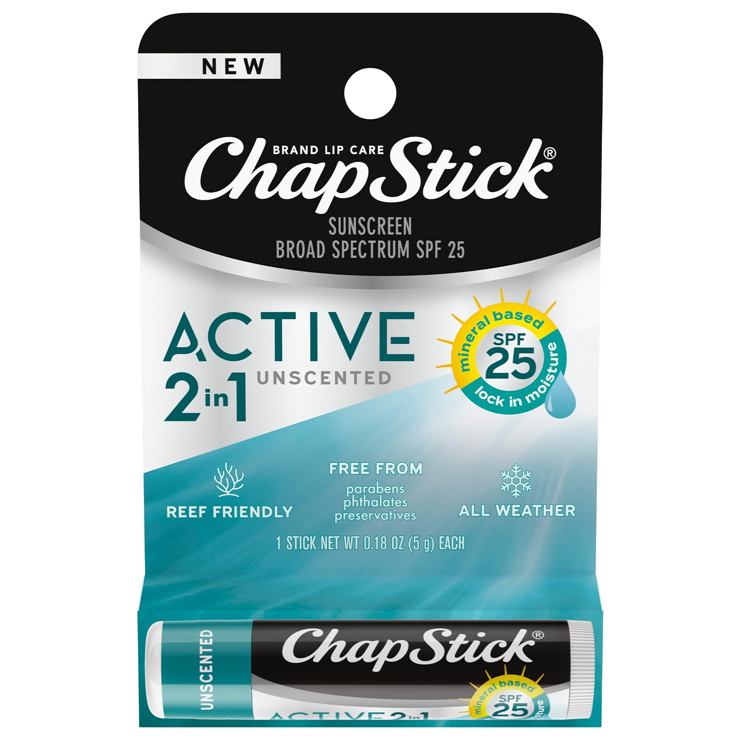 TRUST CHAPSTICK: From America's lip care experts, trusted for over 130 years, our classic formulations won't disappoint. MINERAL-BASED SPF: The sunscreen lip balm is formulated with reef-friendly 20.5 zinc oxide to help protect your lips from UVA UVB rays. HEAL CHAPPED LIPS: Our time-tested moisturizing lip balms smoothly glide on dry, cracked lips without feeling sticky or greasy. NATURAL LIP BALM: Aloe vera, shea butter, Vitamin E, and other naturally nourishing ingredients like coconut oil, jojoba, and mango butter prevent your lips from becoming dry and cracked. ACTIVE LIP CARE BUNDLE: Before hitting the beach or the slopes, grab a ChapStick Active 2-in-1 Unscented Lip Balm formulated without parabens, phthalates, or preservatives.