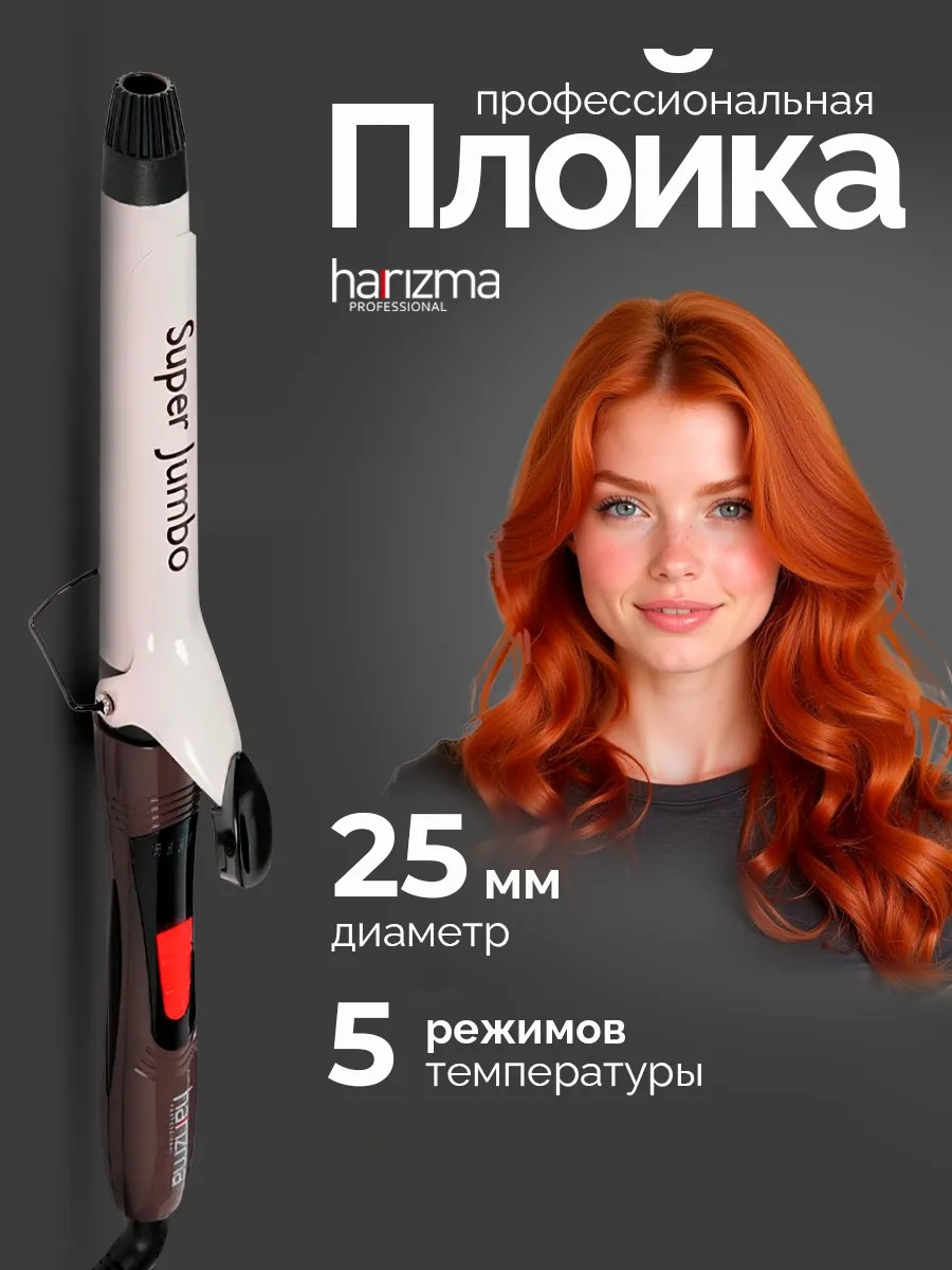 Плойка для завивки Harizma Super Jumbo 25 мм — профессиональные щипцы для создания крупных локонов.