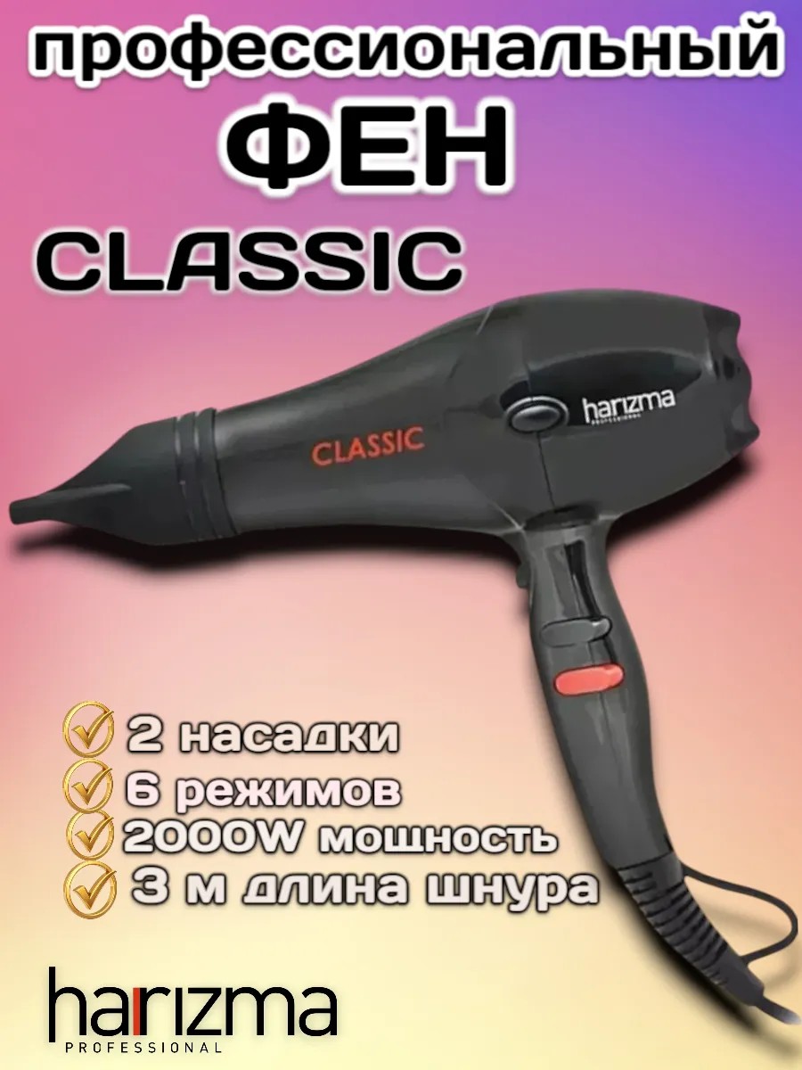 Фен профессиональный парикмахерский для волос Harizma Classic 2000Вт, зарекомендованная на рынке как отличная фирма парикмахерских женских и мужских инструментов для салонов красоты и домашнего пользования, фен профессиональный мощный для укладки.
