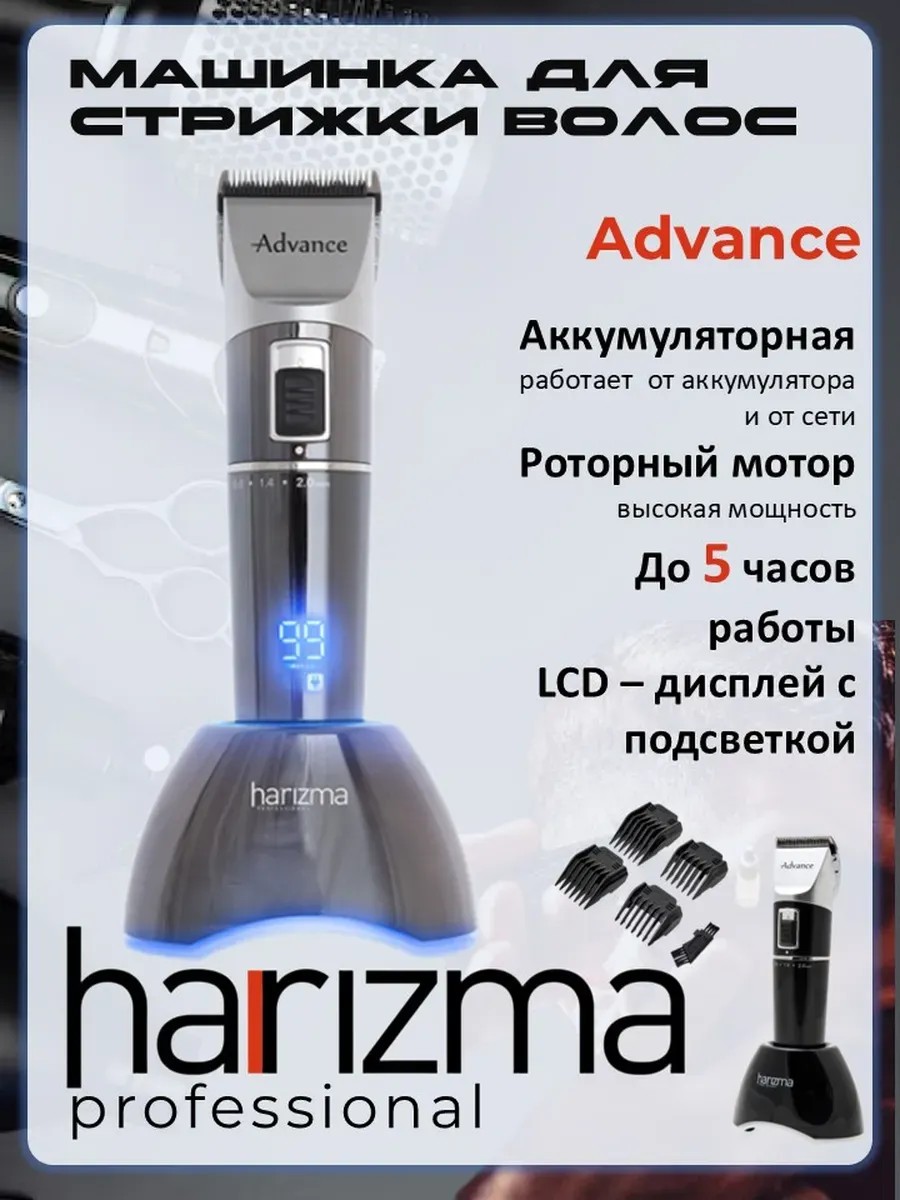 Профессиональная машинка для стрижrb волос бепрофодная - Harizma Advance h 10109 L компактная и мощная машинка для стрижки волос мужская, оснащена комбинированной системой питания и позволяет осуществлять работу от аккумуляторной батареи и от сети через адаптер. Машинка для стрижки сетевая позволяет осуществлять стрижку без перерывов.