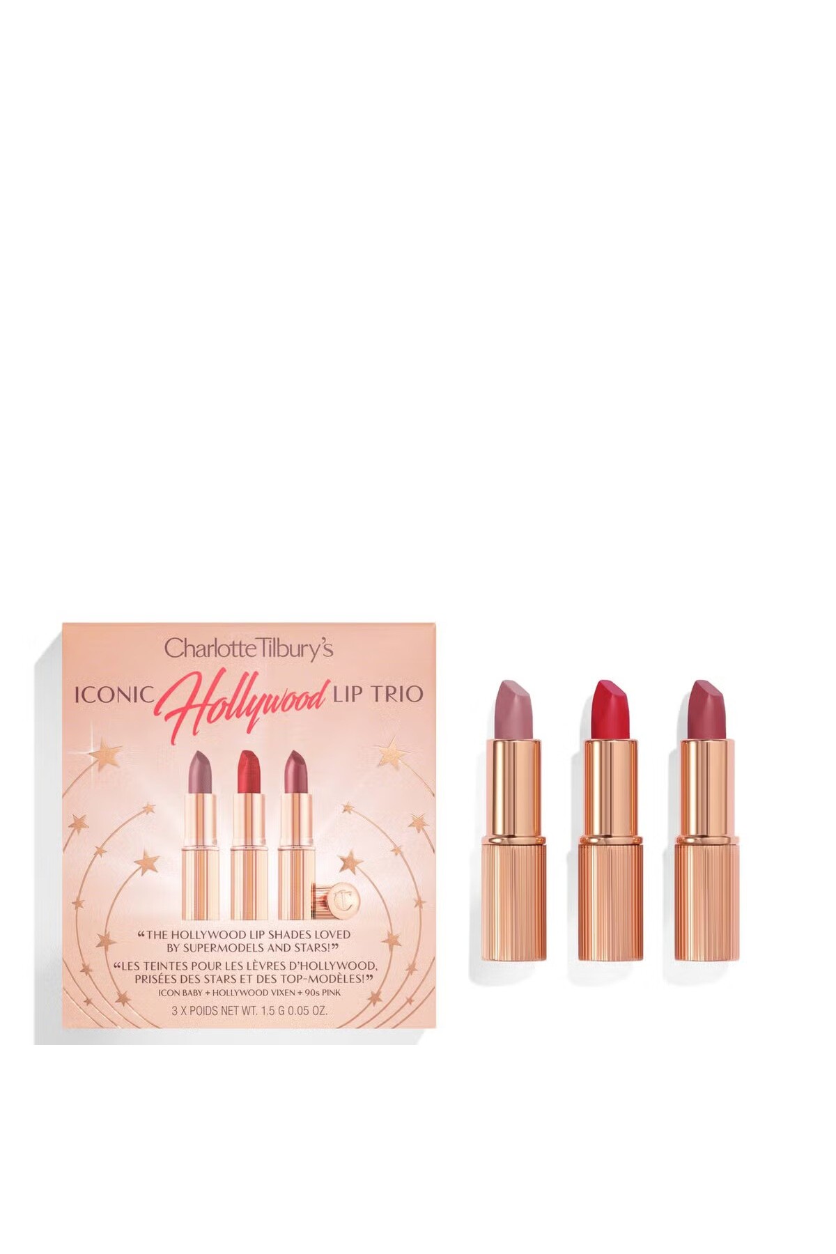 Charlotte's Iconic Hollywood Lip - Pink and Red Shades of Shimmer Lipstick Set (3*1.5 gr)