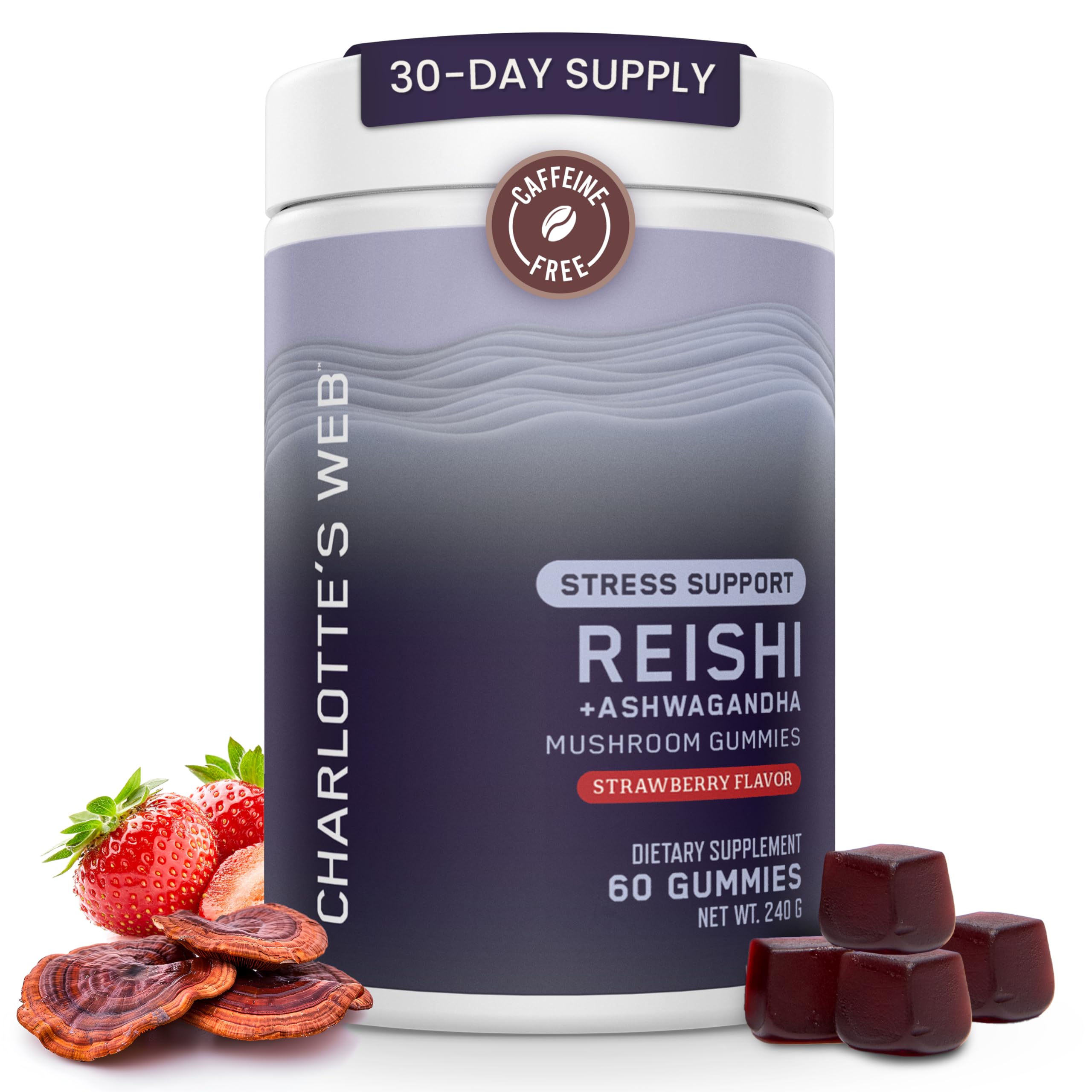 Charlotte's Web Stress Support Mushroom Gummies w/Reishi Ashwagandha Rhodiola Rosea Supplement Natural Supplement Strawberry-Flavored Ashwagandha Gummies (30 Servings)