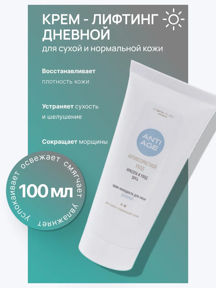 Антивозрастная линейка кремов для кожи лица и шеи ANTI-AGE омолаживающий, увлажняющий, предотвращает старение, объем 100 мл. Косметический крем для лица делает кожу упругой, освежает, повышает эластичность, стимулирует синтез коллагена, устраняет шелушение и сухость, уменьшает морщины вокруг глаз и век. Рекомендуется для использования в косметических салонах красоты для профессионального использования косметологами. В составе косметики используются натуральные компоненты для увлажнения и питания кожи лица. Легкий крем-филлер подходит для сухой, чувствительной, нормальной кожи лица. После очищения кожи лица гелем или пенкой рекомендуется нанести массирующими движениями крем по массажным линиям утром. Крем не растекается, быстро впитывается, имеет маленький расход, обладает приятным ароматом. Антивозрастной крем для сияния кожи лица Лифтинг-эффект - лучший подарок на День Рождения, Новый год, 8 марта для мамы, жены, любимой девушки, женщины!