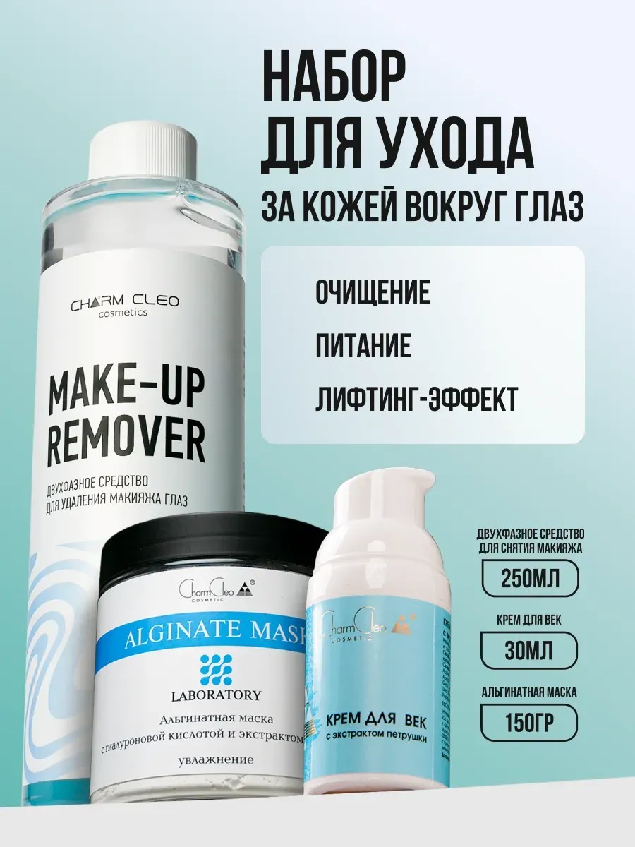 Набор двухфазное средство для снятия макияжа, крем для век с экстрактом петрушки и альгинатная маска с гиалуроновой кислотой и экстрактом гуараны — это ваш шаг к идеальной коже.