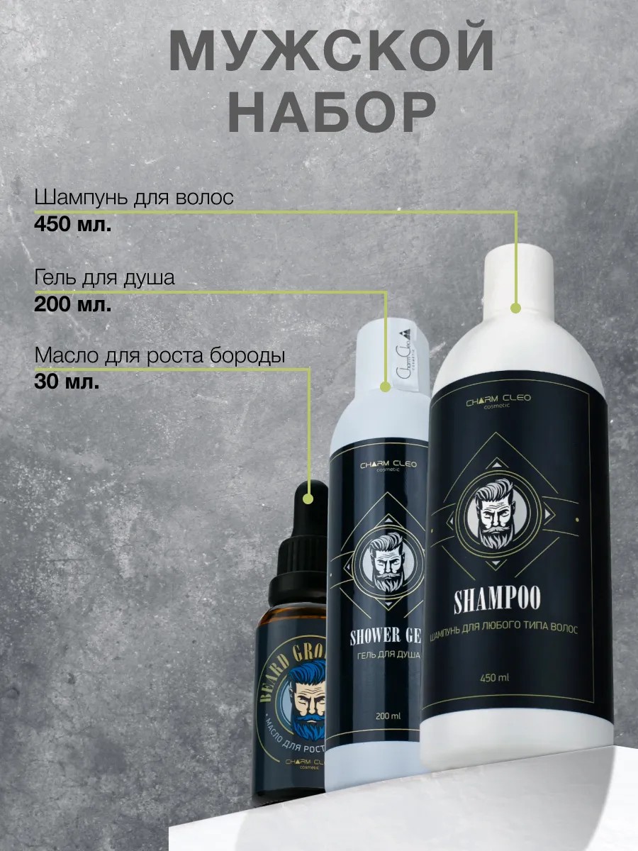 Набор "Шампунь, гель для душа и масло для роста бороды CharmCleo" — идеальный уход для мужчин!