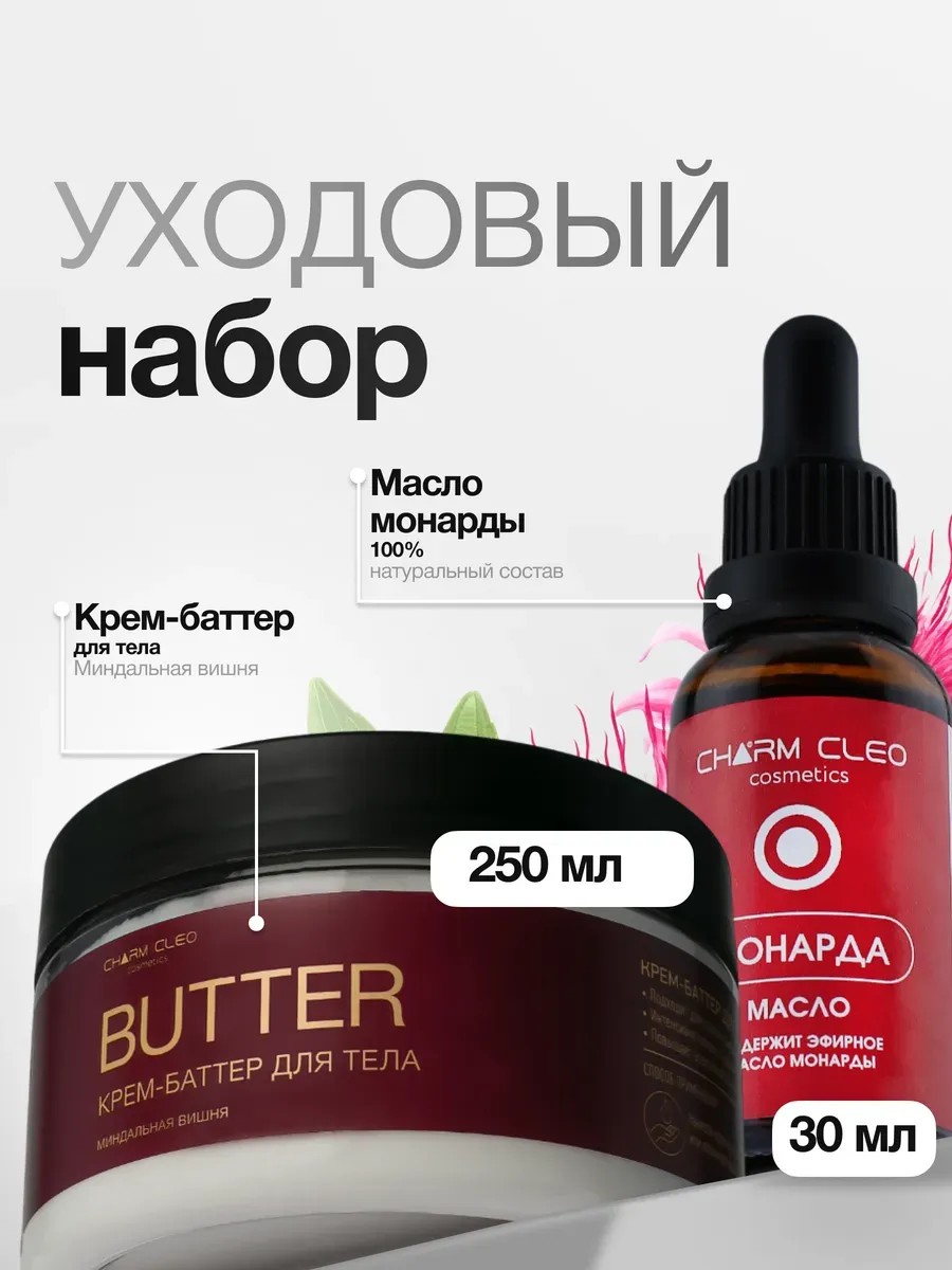 Набор для ухода за кожей: масло с экстрактом монарды 30 мл + крем-баттер для тела "Миндальная вишня" 250 мл