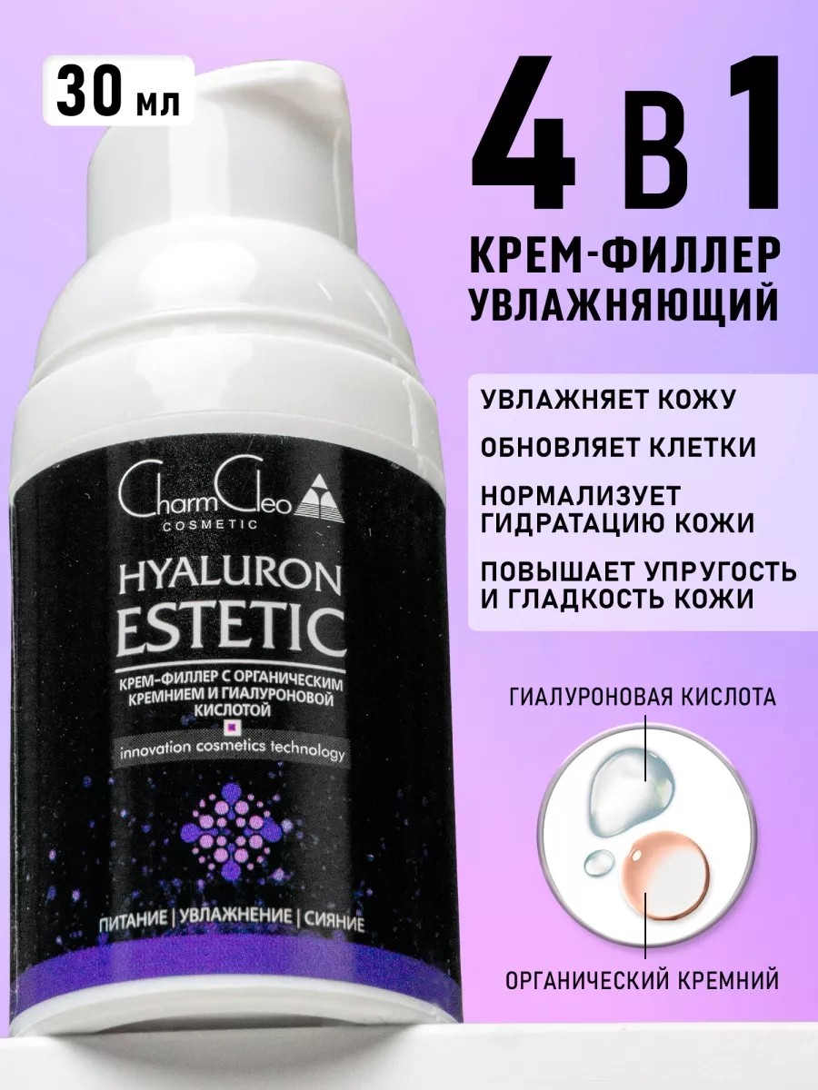 A firming, moisturizing, and anti-aging cream-filler for radiant skin of the face and neck, 30 ml. This cosmetic face cream with hyaluronic acid firms the skin, eliminates shine, refreshes, improves elasticity, stimulates collagen synthesis, and reduces wrinkles around the eyes and eyelids. Recommended for use in beauty salons and by professional cosmetologists. This product contains natural ingredients to moisturize and nourish the skin. This lightweight fluid cream is suitable for normal, dry, aging, oily, and sensitive skin. After cleansing the skin with a gel or foam, it is recommended to apply the cosmetic product along the massage lines morning and evening. This rejuvenating cream with a dispenser does not spread, is quickly absorbed, has a low consumption rate, and has a pleasant aroma. This anti-aging face cream is the best gift for a birthday, New Year, or March 8th for mom, wife, girlfriend, or woman!