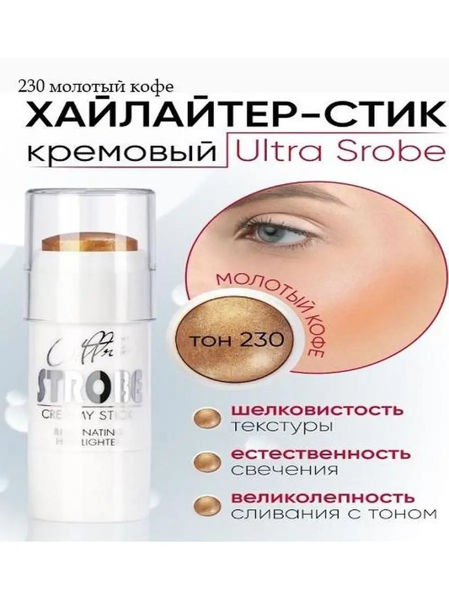Хайлайтер жидкий в стике кремовой текстуры Ultra Strobe с шелковистой текстурой Белорусского бренда Шарм - идеально завершающий штрих при создании макияжа. Хайлайтер для лица техники макияжа стробинг обладает кремовой текстурой, которая буквально тает на коже. Содержит большое количество мельчайшего шиммера, создающего восхитительное сияние. С помощью хайлайтера в виде стика так легко и быстро создать правильный зрительный объем лица, придать здоровый и свежий вид коже. Создайте свой образ, выделите рельеф скул, век, губ или ключиц. Придает коже естественное сияние. Великолепно сливается с тоном. Возможно использование декоративного бронзатора для лица и тела наносить на выступающие части лица: скулы, спинку носа, область под бровью, середину лба, "галочку" над верхней губой и серединку нижней губы, на серединку подбородка с целью придания эффекта свежести и сияния, выравнивая нужные участки лица и тела. Стойкая формула хайлайтера позволит блистать на протяжении 6-8 часов. Можно составить бьюти - бокс вместе с другими белорусскими косметическими средствами уходовой косметики бренда Charme. Отличное решение для современных девушек, подростков и женщин. У нас есть акции и распродажи, вы можете купить наши товары в подарок со скидкой!