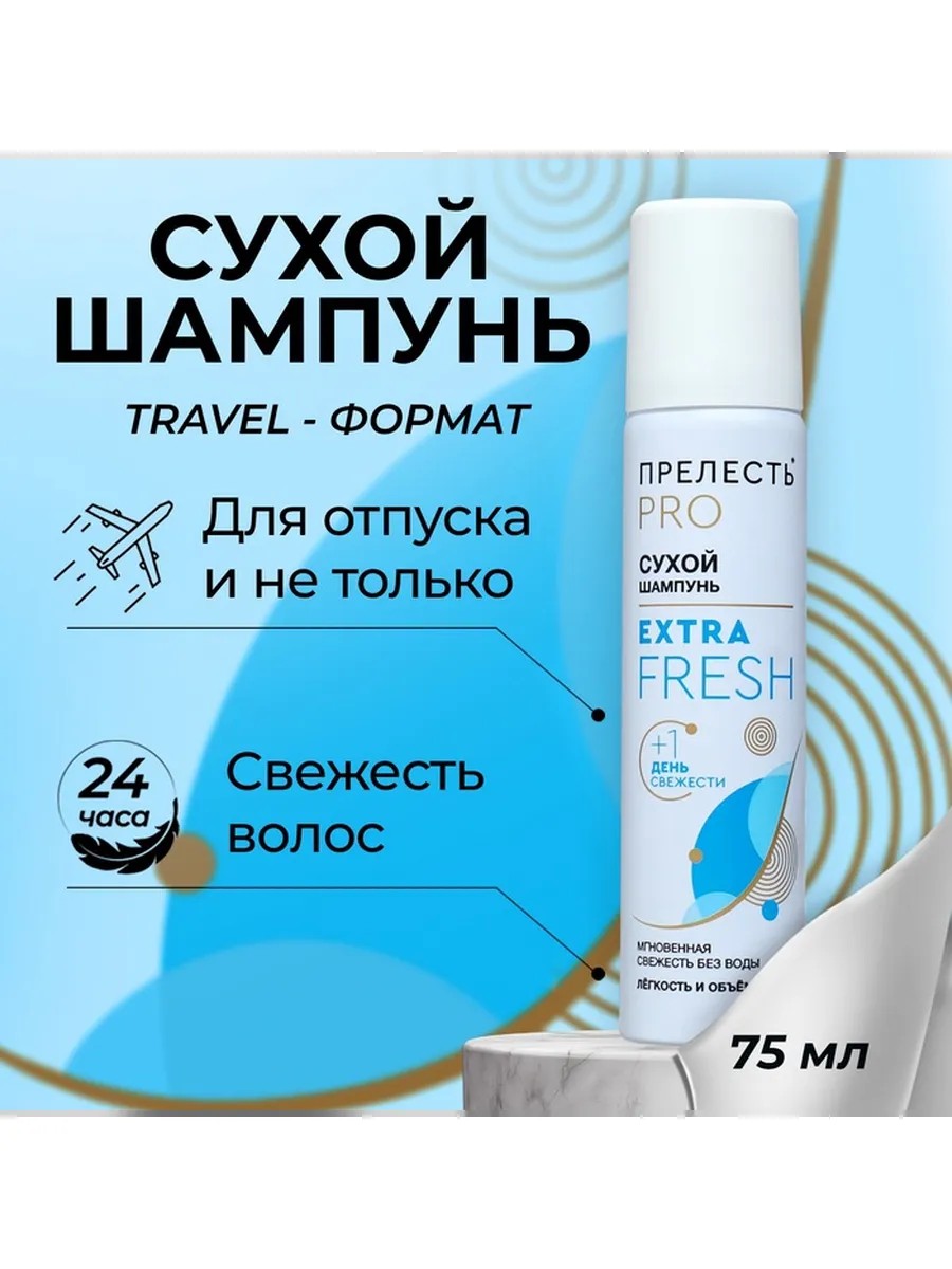 Сухой шампунь Прелесть Professional Extra Fresh мгновенно очистит волосы и сохранит свежесть до 24 часов. Он незаменим в ситуациях, когда нет возможности помыть голову, а также как средство для придания объема и для легкого стайлинга. Прелесть Professional Extra Fresh абсорбирует себум и легко вычесывается, не оставляя белого налета и следов на одежде.