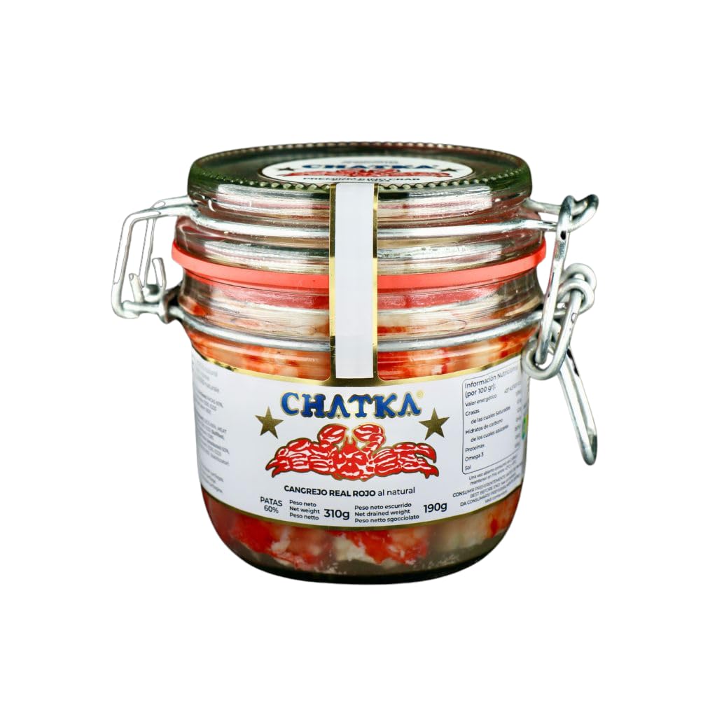 Chatka Crabe Royal Rouge, Pattes et Chair Émiettée, Bocal en Verre (190 gr)