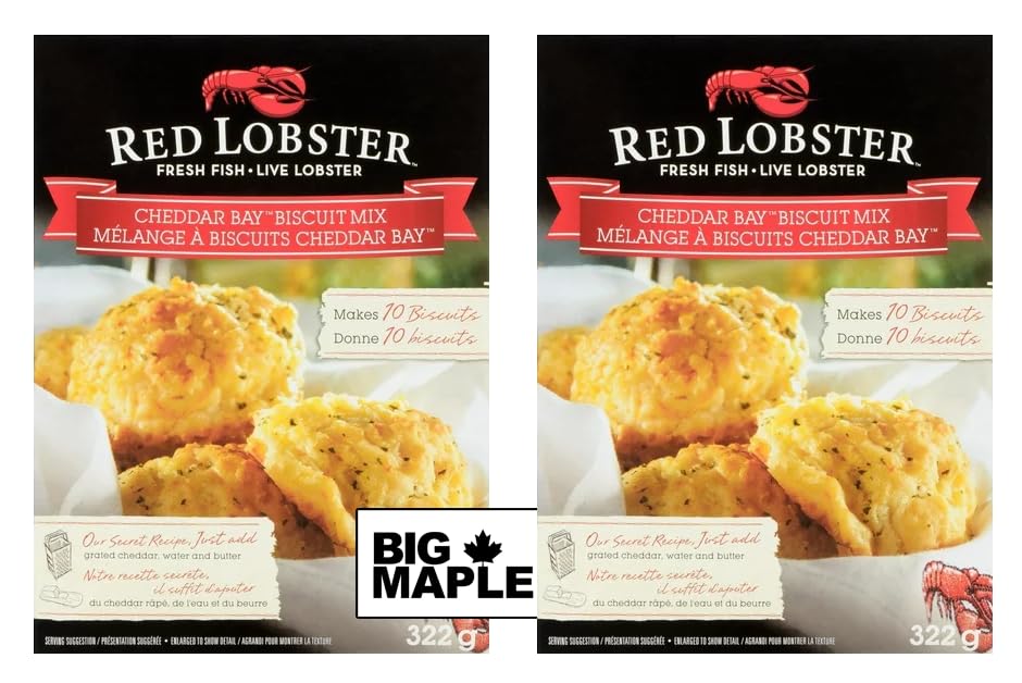 Bring the freshness and warmth of Cheddar Bay Biscuits into your home and enjoy them at your own table with Red Lobster Cheddar Bay Biscuit Mix! Just add water, cheddar and butter to create the same Cheddar Bay Biscuits served in restaurants. Serve them fresh with your meal, or as a savory snack for family and friends.EASY TO MAKE: Just add water, cheddar and butter to create the same Cheddar Bay Biscuits served in restaurants. TASTY SIDE DISH: Makes approximately 20 biscuits. Serve them fresh with your meal, or as a savory snack for family and friends. FUN TRIVIA: Enjoy the BONUS BIG MAPLE TRIVIA cards while learning interesting facts to share with family, friends and co-workers. BUNDLE INCLUSION: (2) packages of Red Lobster Cheddar Bay Biscuit Mix (322g per box) with BIG MAPLE Trivia Cards.
