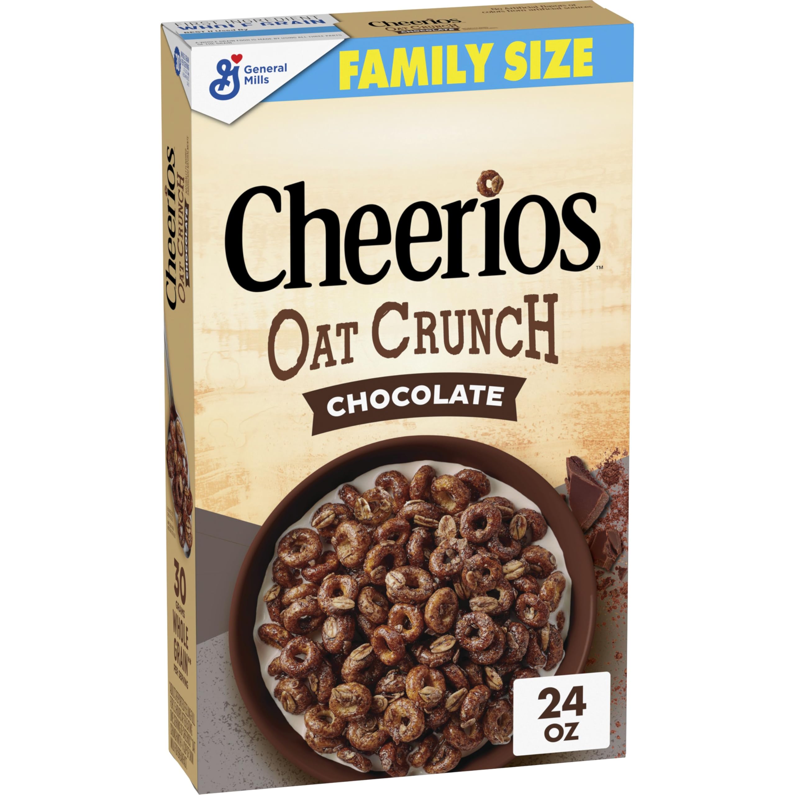 : A little crunch is a long way from the comfort of your morning with Cheerios Oat Crunch Chocolate. It's the delicious muesli with a thoughtful crunch that helps keep you satisfied all morning long. Start your day with a bowl of this sweet cereal made with wholegrain oats and cocoa as part of a balanced breakfast. Besides its delicious chocolate taste, there are no artificial flavors or colors from artificial sources, with wholegrain wheat oats used as the first ingredient. Each serving contains 30g of whole grains (at least 48g of your recommended daily intake). Add Cheerios Oat Crunch to your shopping list along with other wholegrain oat favorites like oat flour. Try mixing it into your favorite homemade trail mix for an irresistible chocolate twist. Or enjoy something straight from the box after school. Perfect for on-the-go mornings or as an ingredient in quick family snacks, Cheerios Oat Crunch is one of General Mills' cereals that spreads goodness to grown-ups. Adults reported feeling full 3.5 hours after eating a serving of Cheerios Oat Crunch with 3 4 cup of skim milk for breakfast. Ingredients: Wholegrain oats, sugar, wholegrain corn, modified corn starch, rapeseed and or sunflower oil, cocoa processed with alkali, rice flour, corn syrup, salt, corn starch, unsweetened chocolate, tripotassium phosphate, color (caramel, Annatto extract), baking powder, natural flavor, rosemary extract. Vitamin E (mixed tocopherols) added to preserve freshness. Vitamins and minerals: tricalcium phosphate, calcium carbonate, iron and zinc (mineral nutrients), vitamin C (sodium ascorbate), vitamins A and B (niacinamide), vitamins A and B (calcium pantothenate), vitamin B1 (thiamine mononitrate), vitamin B6 (pyridoxine hydrochloride), vitamin B2 (ridoxine), vitamin B12, vitamin A (palmitate), vitamins A and B (folic acid), vitamin D3Contains: One 680ml box of Cheerios Oat Crunch chocolate flavored cereal. Delicious versatility: Besides making this Cheerios muesli part of a balanced breakfast, sprinkle some into trail mix recipes or homemade granola bars. Spoon on some crunch anytime. Whole grains: There are no artificial flavors or colors from artificial sources, with whole wheat oats as the first ingredient each serving contains 30g of whole grains (at least 48g a day is recommended). Great start: Each serving helps keep you full all morning adults reported feeling full 3.5 hours after eating one serving of Cheerios Oat Crunch with 3 4 cup of skim milk at breakfast. Crunchy crunch: Dive into a delicious chocolate bowl of multigrain cereal with your favorite crunchy oat bones.Description du produit Un peu croustillant est un long chemin avec les céréales Cheerios Oat Crunch au chocolat. C'est le délicieux muesli avec un crunch attentionné qui vous aide à rester rassasié toute la matinée. Commencez votre journée avec un bol de cette céréale sucrée à base d'avoine complète et de cacao dans le cadre d'un petit-déjeuner équilibré. Outre son délicieux goût de chocolat, il n'y a pas d'arômes artificiels ou de couleurs issues de sources artificielles, l'avoine de blé entier étant utilisée comme premier ingrédient. Chaque portion contient 30 g de grains entiers (au moins 48 g par jour recommandé). Ajoutez Cheerios Oat Crunch à votre liste de courses avec d'autres favoris d'avoine à grains entiers tels que la farine d'avoine. Essayez de le mélanger dans votre mélange de sentiers maison préféré pour une touche de chocolat irrésistible. Ou mangez quelque chose directement dans la boîte après l'école. À emporter pour les matins occupés ou comme ingrédient pour des collations familiales rapides, Cheerios Oat Crunch fait partie des céréales General Mills qui répandent la bonté des morts aux adultes. Les adultes ont signalé se sentir rassasiés 3,5 heures après avoir mangé une portion de Cheerios Oat Crunch avec 3 4 tasse de lait écrémé au petit-déjeuner. Ingrédients Avoine complète, sucre, maïs entier, amidon de maïs modifié, huile de colza et ou de tournesol, cacao transformé avec alcalin, farine de riz, sirop de maïs, sel, amidon de maïs, chocolat non sucré, phosphate tripotassique, couleur (caramel, extrait d'Annatto), levure chimique, goût naturel, extrait de romarin. Ajout de la vitamine E (tocophérols mixtes) pour préserver la fraîcheur. Vitamines et minéraux : phosphate tricalcique, carbonate de calcium, fer et zinc (nutriments minéraux), vitamine C (ascorbate de sodium), vitamine A B (niacinamide), vitamine A B (pantothénate de calcium), vitamine B1 (mononitrate de thiamine), vitamine B6 (chlorhydrate de pyridoxine), vitamine B2 (ridoxine). boflavin), Vitamine B12, vitamine A (palmitate), vitamine A B (acide folique), vitamine D3Contient : une boîte de 680 ml de céréales au goût chocolat Cheerios Oat Crunch. Polyvalence délicieuse : en plus de faire ce muesli Cheerios fait partie d'un petit-déjeuner équilibré, saupoudrez quelques-uns dans des recettes de mélange de sentiers ou de barres de céréales maison. Cuillère un peu de crunch à tout moment. Grains entiers: il n'y a pas d'arômes artificiels ou de couleurs de sources artificielles, avec l'avoine de blé entier comme premier ingrédient chaque portion contient 30 g de grains entiers (au moins 48 g par jour recommandé). Bon départ : chaque portion vous aide à vous garder rassasié toute la matinée les adultes ont déclaré se sentir rassasiés 3,5 heures après avoir mangé une portion de Cheerios Oat Crunch avec 3 4 tasse de lait écrémé au petit-déjeuner. Croustillant Croustillant: plongez dans un délicieux bol au chocolat de céréales multigrains avec vos os préférés à l'avoine croustillante.Cheerios Granola à l'avoine et au chocolat, 680 ml