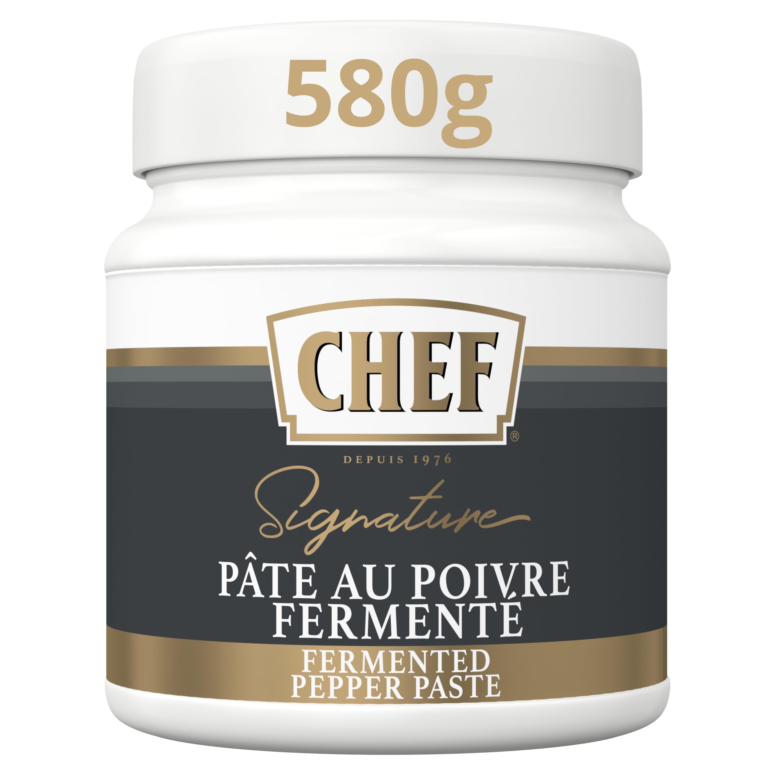 CHEF Fermented Pepper Paste seasoning is a signature paste bringing a typical taste of fermented pepper in a single gesture to all your hot or cold preparations. It is simple and quick to use thanks to its paste texture and can be added at the beginning, in the middle or at the finish of your culinary creations. In accordance with current regulations: - Allergens present in the recipe or in one of its ingredients: none. - Allergens potentially present: none. Please check this information on your product label, as only this is authentic. INGREDIENTS Water, fermented black pepper 28 , sugar, salt, shallot puree, flavors, cognac, citrus fibers, cane sugar syrup. In accordance with current regulations: - Allergens present in the recipe or in one of its ingredients: none. - Allergens potentially present: none. Please check this information on your product label, as only this is authentic. DIRECTIONS FOR USE Can be used hot or cold to flavor, enhance and personalize all of your culinary preparations. Add 10 to 40 g of product per liter kg of preparation. The recommended dosage is indicative you can, depending on your taste and the preparations made, increase or reduce the quantity of product used. To prepare condiments based on fermented pepper. To flavor hot or cold sauces. For marinating meats or fish. To make emulsions, icings, compound butters, etc. SAFETY WARNING Minimum durability: 12 months. Store dry and away from heat. After opening, store in the refrigerator and use within 6 weeks. Suitable for a vegan diet. Gluten-free. This CHEF Signature Sauce brings a unique and original taste of fermented pepper to all your culinary preparations It can be used hot or cold Low in fat. CHEF Fermented Pepper Paste is ideal for preparing condiments based on fermented pepper. To flavor hot or cold sauces. To marinate meat or fish. To make emulsions, glazes, compound butters. CHEF Fermented Pepper Paste seasoning is a signature paste bringing a typical taste of fermented pepper in a single step to all your hot or cold preparations. It is simple and quick to use thanks to its paste texture and can be added at the beginning, in the middle or at the end of your culinary creations. L'assaisonnement Pâte au Poivre Fermenté CHEF est une pâte signature apportant un goût typique de poivre fermenté en un seul geste dans toutes vos préparations chaudes ou froides. Il est simple et rapide à mettre en oeuvre grâce à sa texture en pâte et peut être ajouté au début, au milieu ou en finition de vos créations culinaires. Conformément aux réglementations en vigueur : - Allergènes présents dans la recette ou dans un de ses ingrédients : aucun. - Allergènes potentiellement présents : aucun. Merci de vérifier ces informations sur l'étiquette de votre produit, car seules celles-ci font foi. INGRÉDIENTS Eau, poivre noir fermenté 28 , sucre, sel, purée d'échalotes, arômes, cognac, fibres d'agrumes, sirop de sucre de canne. Conformément aux réglementations en vigueur : - Allergènes présents dans la recette ou dans un de ses ingrédients : aucun. - Allergènes potentiellement présents : aucun. Merci de vérifier ces informations sur l'étiquette de votre produit, car seules celles-ci font foi. MODE D'EMPLOI Utilisable à chaud comme à froid pour parfumer, agrémenter et personnaliser l'ensemble de vos préparations culinaires. Ajouter 10 à 40 g de produit par litre kg de préparation. Le dosage préconisé est indicatif, vous pouvez selon votre goût et les préparations réalisées, augmenter ou réduire la quantité de produit mis en œuvre. Pour préparer des condiments à base de poivre fermenté. Pour parfumer des sauces chaudes ou froides. Pour mariner des viandes ou poissons. Pour réaliser des émulsions, glaçages, beurres composés… AVERTISSEMENT DE SÛRETÉ Durabilité minimale : 12 mois. À conserver au sec et à l'abri de la chaleur. Après ouverture conserver au réfrigérateur et utiliser dans les 6 semaines. Convient à un régime végétalien. Sans Gluten. Cette Sauce Singature CHEF apporte un goût unique et original de poivre fermenté à toutes vos préparations culinaires Elle est utilisable à chaud et à froid À faible teneur en matières grasses. La Pâte Au Poivre Fermenté CHEF est idéale pour préparer des condiments à base de poivre fermenté. Pour parfumer des sauces chaudes ou froides. Pour mariner des viandes ou poissons. Pour réaliser des émulsions, glaçages, beurres composés. L'assaisonnement Pâte au Poivre Fermenté CHEF est une pâte signature apportant un goût typique de poivre fermenté en un seul geste dans toutes vos préparations chaudes ou froides. Il est simple et rapide à mettre en oeuvre grâce à sa texture en pâte et peut être ajouté au début, au milieu ou en finition de vos créations culinaires.