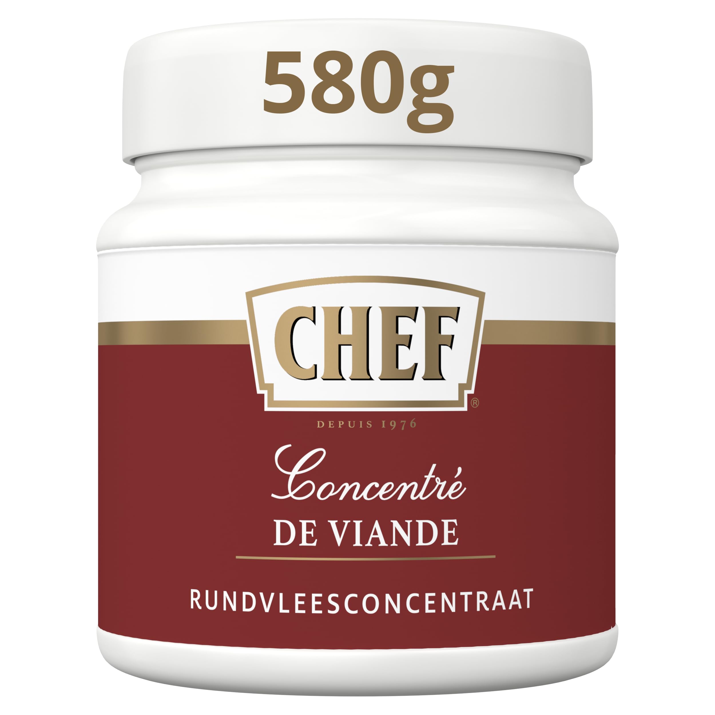 Discover our range of CHEF paste concentrates with Meat Concentrate: A concentrate with a paste texture close to a meat glaze obtained by reduction of noble materials to bring a powerful meaty note to each stage of your preparations. CHEF Meat Concentrate allows you to make the great classics where the addition of ice is necessary, or short sauces directly with cream and butter. INGREDIENTS Beef 25 , yeast extract, flavors (WHEAT), sugar, salt, palm oil, water, tomato paste, color (ammoniacal caramel), spices (coriander seeds, white pepper), thickener (xanthan gum), antioxidant (extract rich in tocopherols), bay leaf extract. In accordance with current regulations: Allergens present in the recipe or in one of its ingredients: WHEAT. Allergens potentially present: none. Please check this information on your product label, as only this is authentic. DIRECTIONS FOR USE A concentrate with a paste texture similar to a meat glaze obtained by reduction of noble materials to bring a powerful meaty note to each stage of your preparations. CHEF Meat Concentrate allows you to make the great classics where the addition of ice is necessary, or short sauces directly with cream and butter. SAFETY WARNING Minimum durability: 18 months. Store dry and away from heat. After opening, store in the refrigerator. NESTLÉ PROFESSIONAL is committed to incregly recyclable packaging: recyclable Polypropylene plastic pot and lid. Meat Concentrate with a paste texture. Excellent hot and cold consistency. No added flavor enhancers. How to cook with CHEF Meat Concentrate: Depending on the flavor strength you want to bring to your recipes 1) Mix 10 to 40 g of product per liter or kilogram of hot or cold preparation 2) Perfect dilution in boiling liquid. Developed with CHEF expertise, the Meat Concentrate in paste form provides excellent hot and cold consistency it is ideal for enhancing the flavor of your meat preparations and is free from added flavor enhancers. It is contained in a practical, airtight, and resealable pot. Discover our range of CHEF paste concentrates with Meat Concentrate: A concentrate with a paste texture close to a meat glaze obtained by reducing noble materials to bring a powerful note of meat to each stage of your preparations. CHEF Meat Concentrate allows you to make great classics where the addition of glaze is necessary, or short sauces directly with cream and butter. Découvrez notre gamme de concentrés en pâte CHEF avec le Concentré de Viande: Un concentré à texture en pâte proche d'une glace de viande obtenu par réduction de matières nobles pour apporter à chaque étape de vos préparations une note puissante de viande. Le Concentré de Viande CHEF permet de réaliser les grands classiques où l'ajout de glace est nécessaire, ou des sauces courtes directement avec de la crème et du beurre. INGRÉDIENTS Viande de bœuf 25 , extrait de levure, arômes (BLÉ), sucre, sel, huile de palme, eau, concentré de tomates, colorant (caramel ammoniacal), épices (graines de coriandre, poivre blanc), épaississant (gomme xanthane), antioxydant (extrait riche en tocophérols), extrait de laurier. Conformément aux réglementations en vigueur : Allergènes présents dans la recette ou dans un de ses ingrédients : BLÉ. Allergènes potentiellement présents : aucun. Merci de vérifier ces informations sur l'étiquette de votre produit, car seules celles-ci font foi. MODE D'EMPLOI Un concentré à texture en pâte proche d'une glace de viande obtenu par réduction de matières nobles pour apporter à chaque étape de vos préparations une note puissante de viande. Le Concentré de Viande CHEF permet de réaliser les grands classiques où l'ajout de glace est nécessaire, ou des sauces courtes directement avec de la crème et du beurre. AVERTISSEMENT DE SÛRETÉ Durabilité minimale : 18 mois. À conserver au sec et à l'abri de la chaleur. Après ouverture, conserver au réfrigérateur. NESTLÉ PROFESSIONAL s'engage pour des emballages de plus en plus recyclables : pot et couvercle en plastique Polypropylènerecyclables. Concentré de Viande à texture en pâte. Une excellente tenue en liaison chaude et froide. Sans exhausteurs de goût ajoutés. Comment cuisiner à l'aide du Concentré de Viande CHEF: Selon la puissance de goût que vous souhaitez apporter à vos recettes 1) Délayez 10 à 40 g de produit par litre ou kilogramme de préparation chaude ou froide 2) Dilution parfaite dans un liquide bouillant. Issu du savoir-faire CHEF, le Concentré de Viande en pâte permet une excellente tenue en liaison chaude et froide est idéal pour rehausser le goût de vos préparations de viandes et est sans exhausteurs de goût ajoutés. Il est contenu dans un pot pratique, hermétique et refermable. Découvrez notre gamme de concentrés en pâte CHEF avec le Concentré de Viande: Un concentré à texture en pâte proche d'une glace de viande obtenu par réduction de matières nobles pour apporter à chaque étape de vos préparations une note puissante de viande. Le Concentré de Viande CHEF permet de réaliser les grands classiques où l'ajout de glace est nécessaire, ou des sauces courtes directement avec de la crème et du beurre.