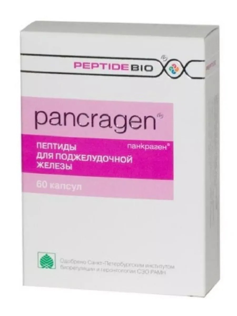 PANKRAGEN N60 CAPSPankragen – Pankragen is a source of peptides with tissue-specific effects on pancreatic cells. Clinical studies have shown that the peptides in Pankragen help normalize carbohydrate metabolism in patients with increased glucose tolerance and type 2 diabetes. Pankragen's peptides improve the synthesis of digestive enzymes by pancreatic cells and normalize digestion (reducing bloating, abdominal heaviness, and other symptoms of exocrine insufficiency). Pankragen is useful for preventing the negative effects of various toxic factors, alcohol, and medications on the pancreas. Pankragen increases the effectiveness of complex treatment for various pancreatic diseases and type 2 diabetes.