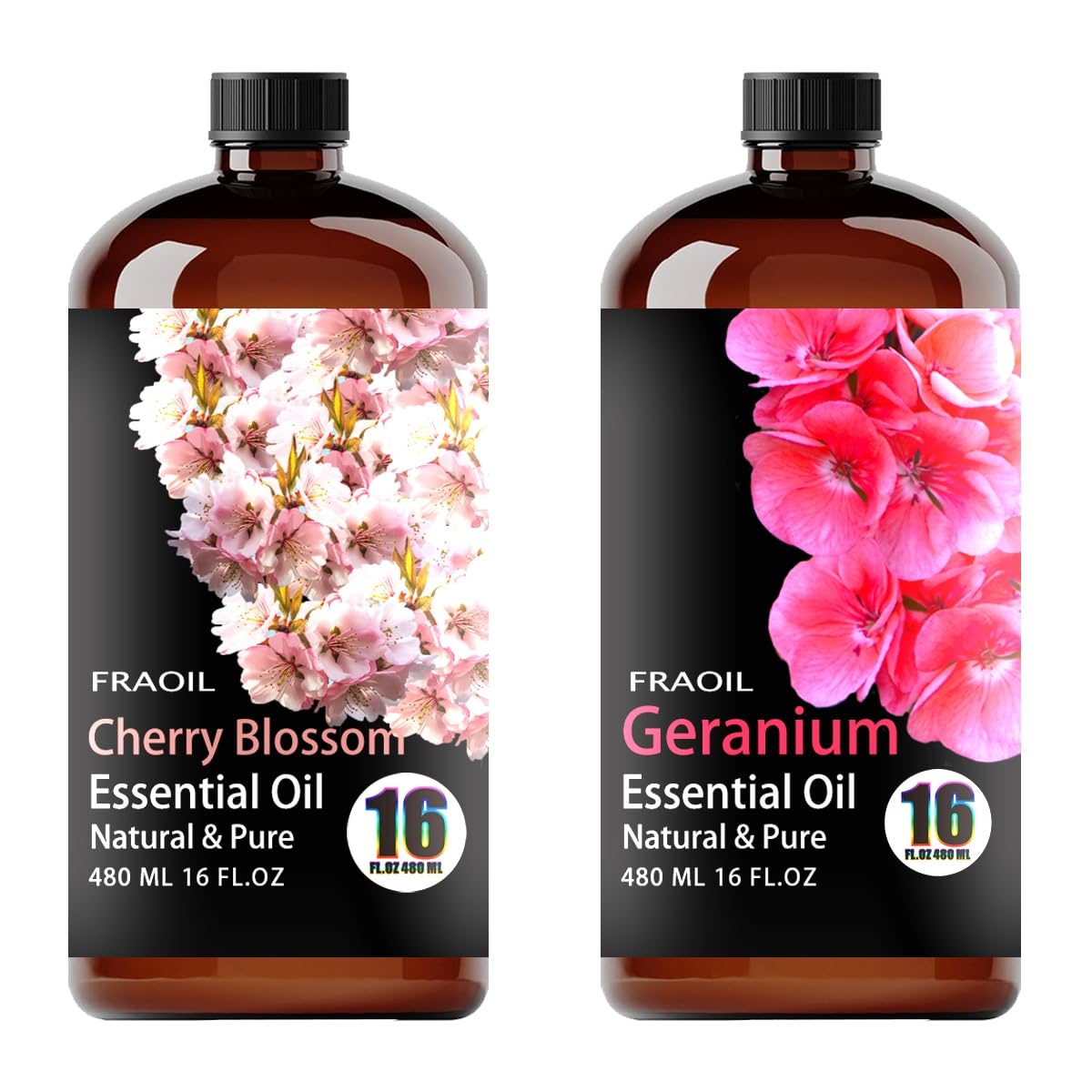 Welcome To FRAOIL Essential Oil, Cherry Blossom Essential Oil 16 Fl Oz and Geranium Essential Oil 16 Fl Oz For Diffuser, Humidifier, Yoga, Cleaning, DIY Candle, Soap Making. Whether You Need Cherry Blossom Essential Oil and Geranium Essential Oil Or Other Essential Oils, FRAOIL Has The Right Essential Oil For You. We Aim To Supply High-Quality Essential Oils At Competitive Rates. Thousands Of Users Have Enjoyed FRAOIL Essential Oil. If You Have Any Questions About Our Essential Oils, Please Feel Free To Contact Us.