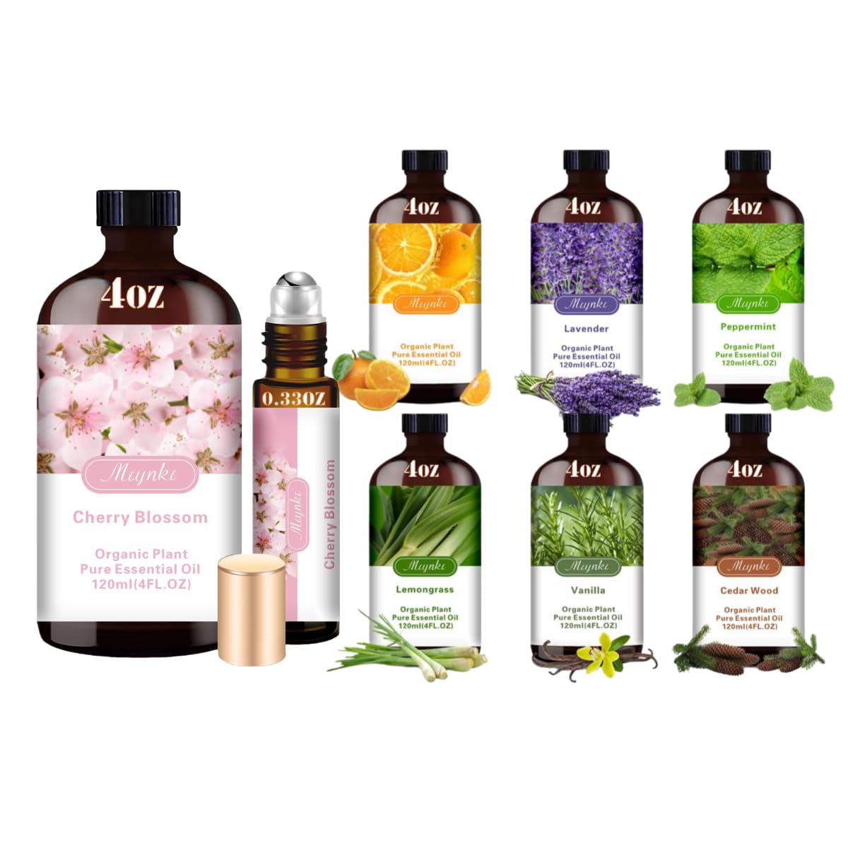 Cherry Blossom Essential Oil & 6-Bottle Aromatherapy Gift Set 4.33oz + 6 120ml Premium Scent Collection for Diffusers Home Fragrance Candle Making & Complete Wellness Experience