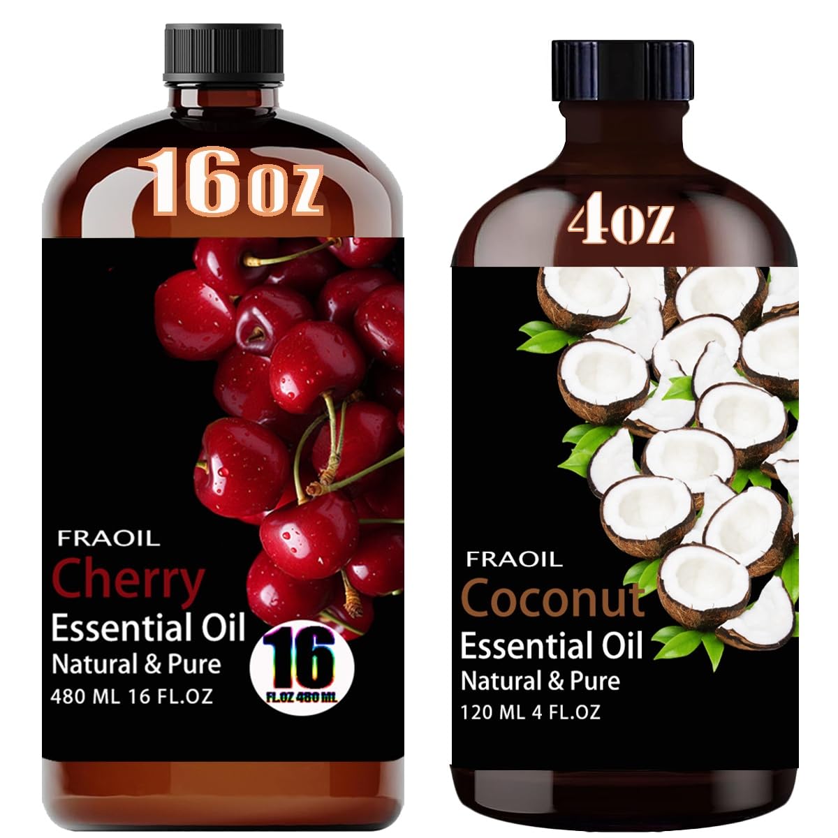 Cherry Essential Oil 16 Fl Oz and Coconut Essential Oil 4 Fl Oz for Diffuser Humidifier Yoga Cleaning DIY Candle Soap Making Perfume Gift for Essential Oils