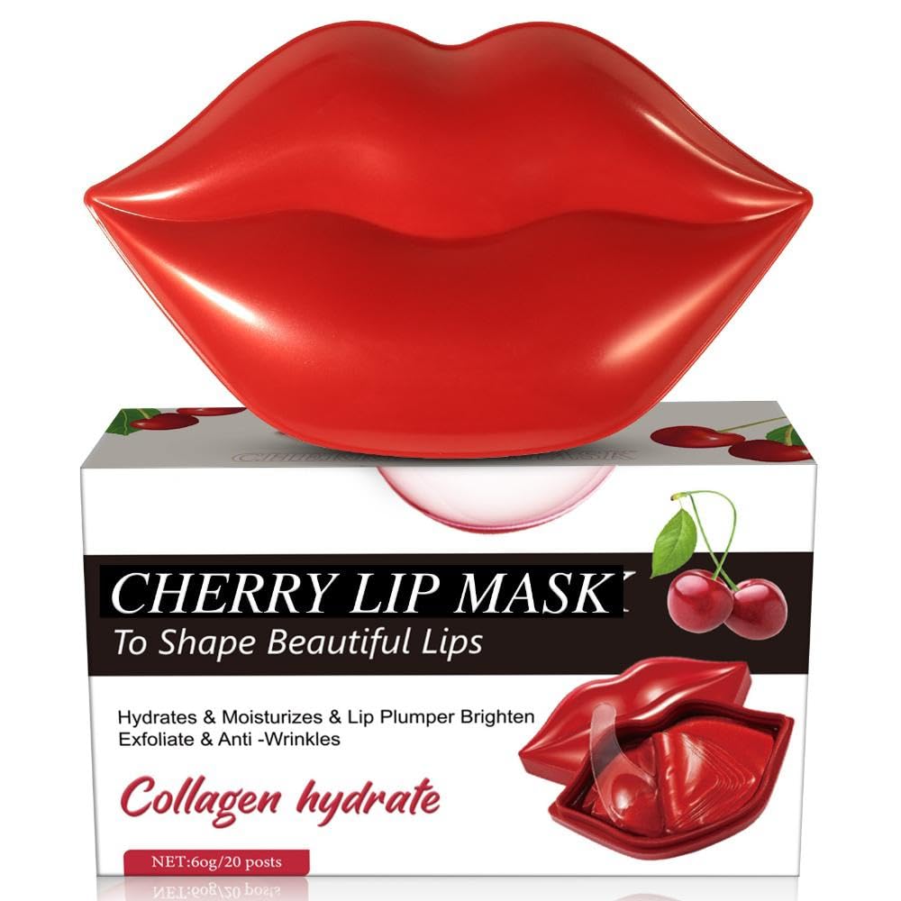 Cherry Lip Mask Hydrating Moisturizing Lip Plumper Reduces Lip Lines and Brightens Lip Color Collagen Infused 60g / 20 Pairs
