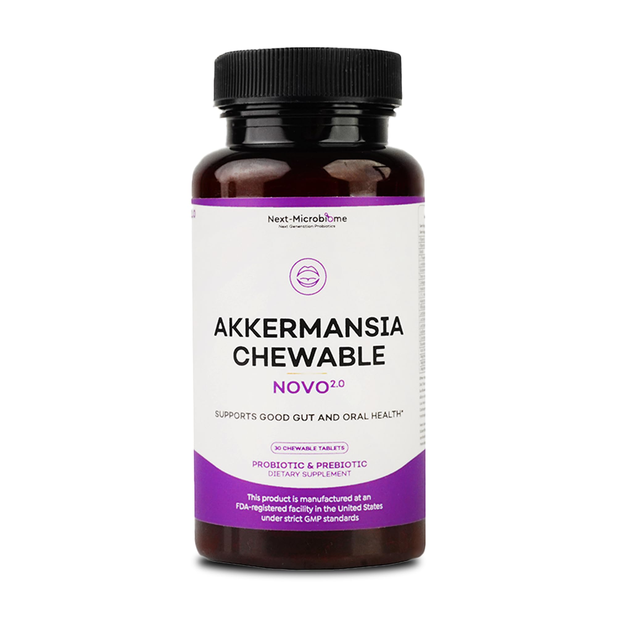 Chewable Akkermansia Probiotic and Prebiotic Supplement NOVO 2.0 with HMO Supports Gut and Oral Microbiome Supplements for Digestive Health and Skin Vitality Targeted Delivery 30 Tablets