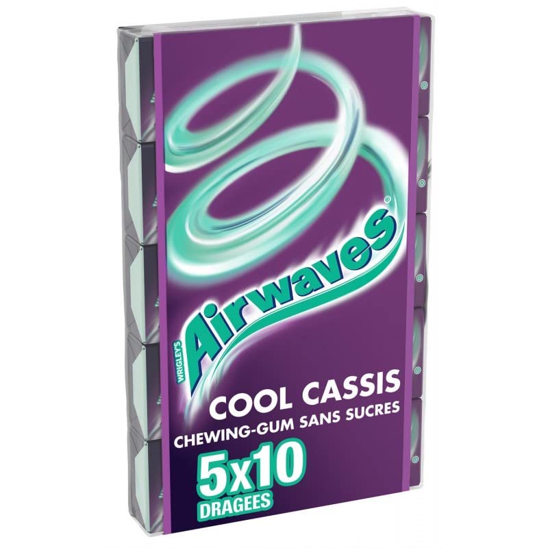 Airwaves sugar-free chewing gum with a refreshing blackcurrant flavor. Box of 5 packs of 10 pieces each, convenient to take anywhere. Provides an intense feeling of freshness to combat bad breath. Ideal for refreshing yourself in any situation. Perfect for fresh breath after a meal or between appointments.- Perfect for fresh breath after a meal or between appointments. - Ideal for refreshing yourself in any situation. - Provides an intense feeling of freshness to combat bad breath. - Box of 5 packs of 10 dragees, convenient to take everywhere. - Sugar-free Airwaves chewing gum with a refreshing blackcurrant flavor.Chewing-gum sans sucre Airwaves au goût rafraîchissant de cassis. Boîte de 5 étuis de 10 dragées, pratique à emporter partout. Procure une sensation de fraîcheur intense pour lutter contre la mauvaise haleine. Idéal pour se rafraîchir en toutes circonstances. Parfait pour une haleine fraîche après un repas ou entre deux rendez-vous.- Parfait pour une haleine fraîche après un repas ou entre deux rendez-vous. - Idéal pour se rafraîchir en toutes circonstances. - Fournit une sensation de fraîcheur intense pour lutter contre la mauvaise haleine. - Boîte de 5 étuis de 10 dragées, pratique à emporter partout. - Chewing-gum Airwaves sans sucres au goût rafraîchissant de cassis.Chewing-gum sans sucres Airwaves Cool Cassis - Rafraîchissant, sans sucres, 5x10 pièces Chocolat et confiserie - Format de poche - 70g - Le Lot De 3