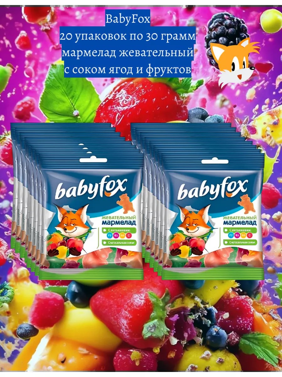 Мармелад BabyFox (Бэби Фокс), в наборе 20 пачек мармелада, общий вес продукта 600гр.