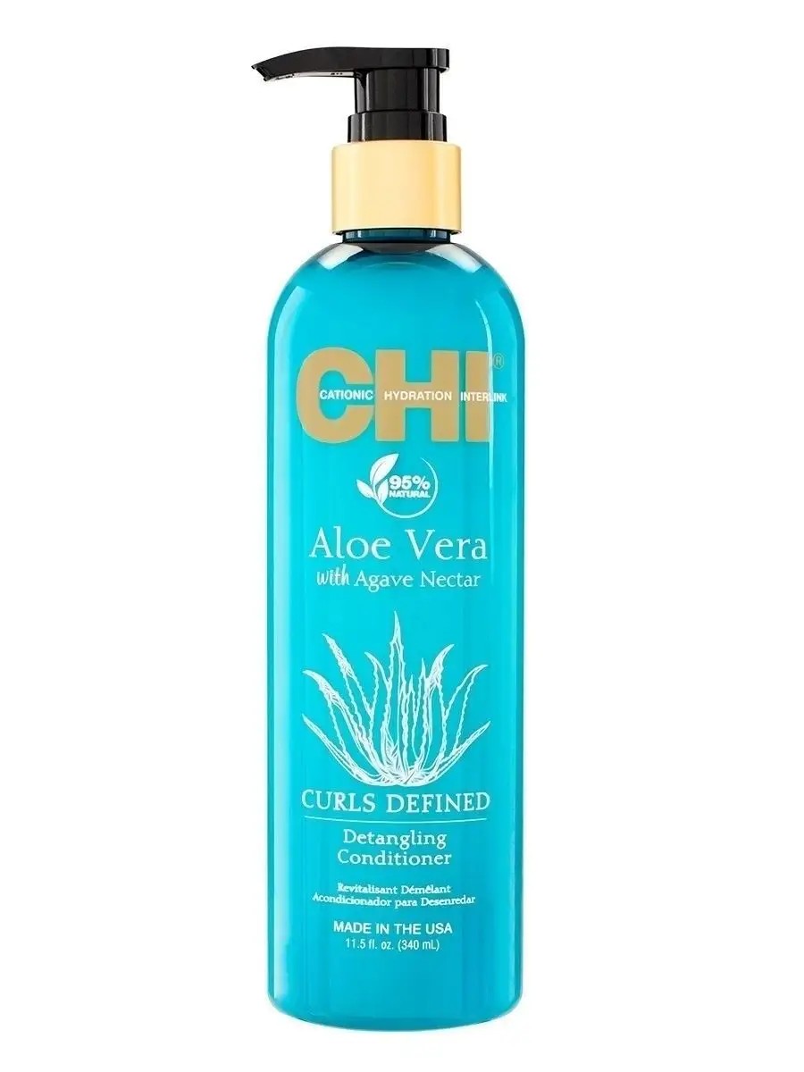 Увлажняющий кондиционер CHI Aloe Vera для облегчения расчесывания эффективное решение для сухих, непослушных, поврежденных и вьющихся волос. Кондиционер увлажняет, делает волосы более послушными и облегчает расчесывание. Содержит 95% натуральных компонентов. Средство комплексно воздействует на структуру волос и помогает бороться с повреждениями участками. Алоэ обеспечивает интенсивное увлажнение и придает волосам эластичность. Шелк наполняет волосы силой, предотвращает спутывание и придает выраженный блеск.