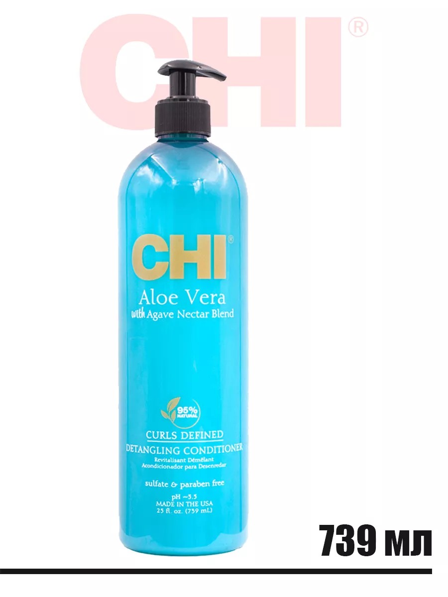 CHI Aloe Vera кондиционер для распутывания волос содержит комплекс из Нектара Агавы и Алоэ Вера, для восстановления эластичности, блеска и упругости волос. Средство мягко распутывает, насыщает влагой, смягчает и делает гладкой структуру вьющегося волоса, снимает пушистость и статическое напряжение. Смесь гидролизованного шелка, керамики CHI, комплекса витаминов для волос и растительного протеина укрепляет и защищает кудрявые волосы, которые после применения становятся здоровыми и блестящими, подчеркивается натуральная текстура волоса и завиток становится упругим и подвижным. Специальная формула подчеркивает каждый локон волос. Помогает ломким, ослабленным кудрям восстановить жизненные силы. Обогащенная шелком композиция растворяет и смягчает волосы. Кудри становятся эластичными и легко укладываются. 95% натуральные ингредиенты. рН: 2,8 - 3,8. Не содержит сульфатов или парабенов. Применение: После мытья c шампунем для волос CHI Aloe Vera Curl Enhancing Shampoo, нанести кондиционер и равномерно распределить по волосам. Для обычного кондиционирования – оставить на 2 минуты, для глубокого - обернуть голову полотенцем и оставить на 5 минут. Состав: Aqua/Water/Eau, Cetearyl Alcohol, Glycerin, Cetyl Alcohol, Propanediol, Ethyl Macadamiate, Behentrimonium Chloride, Dimethicone, Aloe Barbadensis Leaf Juice, Agave Tequilana Leaf Extract, Sodium PCA, Panthenol, Hydrolyzed Silk, Hydroxyproline, L-Proline, Sodium Hyaluronate, Cocodimonium Hydroxypropyl Silk Amino Acids, Polysorbate 60, Amodimethicone, Phenoxyethanol, Caprylyl Glycol, Cetrimonium Chloride , Guar Hydroxypropyltrimonium Chloride, Glycolic Acid , Polyquaternium-37, Dimethiconol, Propylene Glycol Dicaprylate/Dicaprate, Potassium Sorbate, Trideceth-10, Hexylene Glycol, PPG-1 Trideceth-6, Ethylhexylglycerin, Benzyl Alcohol, Fragrance (Parfum), Limonene.