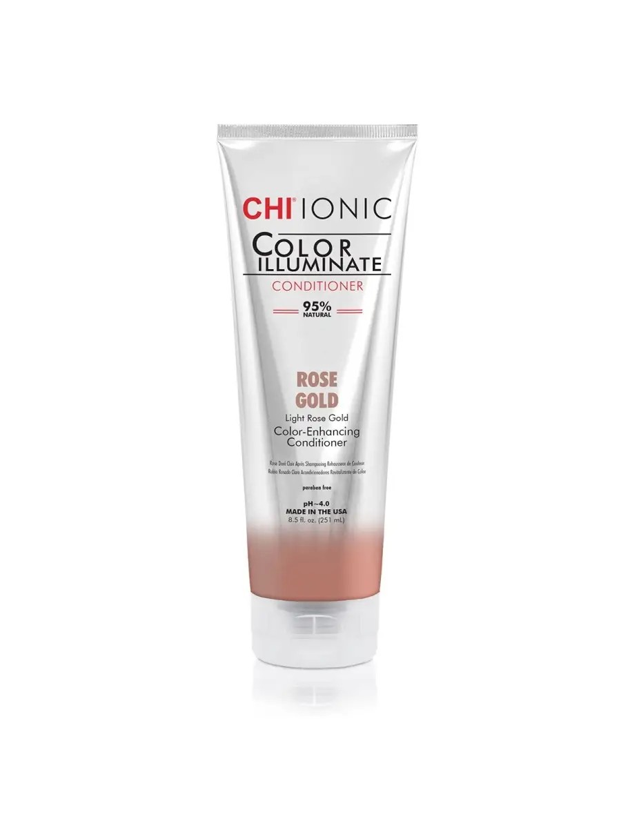 CHI Rose Gold Toning Conditioner**, enriched with a silk amino acid complex, adds intensity to natural and color-treated hair while nourishing the hair structure. Enhances the natural shade and helps color-treated hair maintain its vibrancy and shine until your next salon visit. Suitable for daily use. **CHI Rose Gold Toning Conditioner** enhances color and tones previously colored hair. Moisturized, soft, and smooth hair, filled with vibrant, radiant shades.