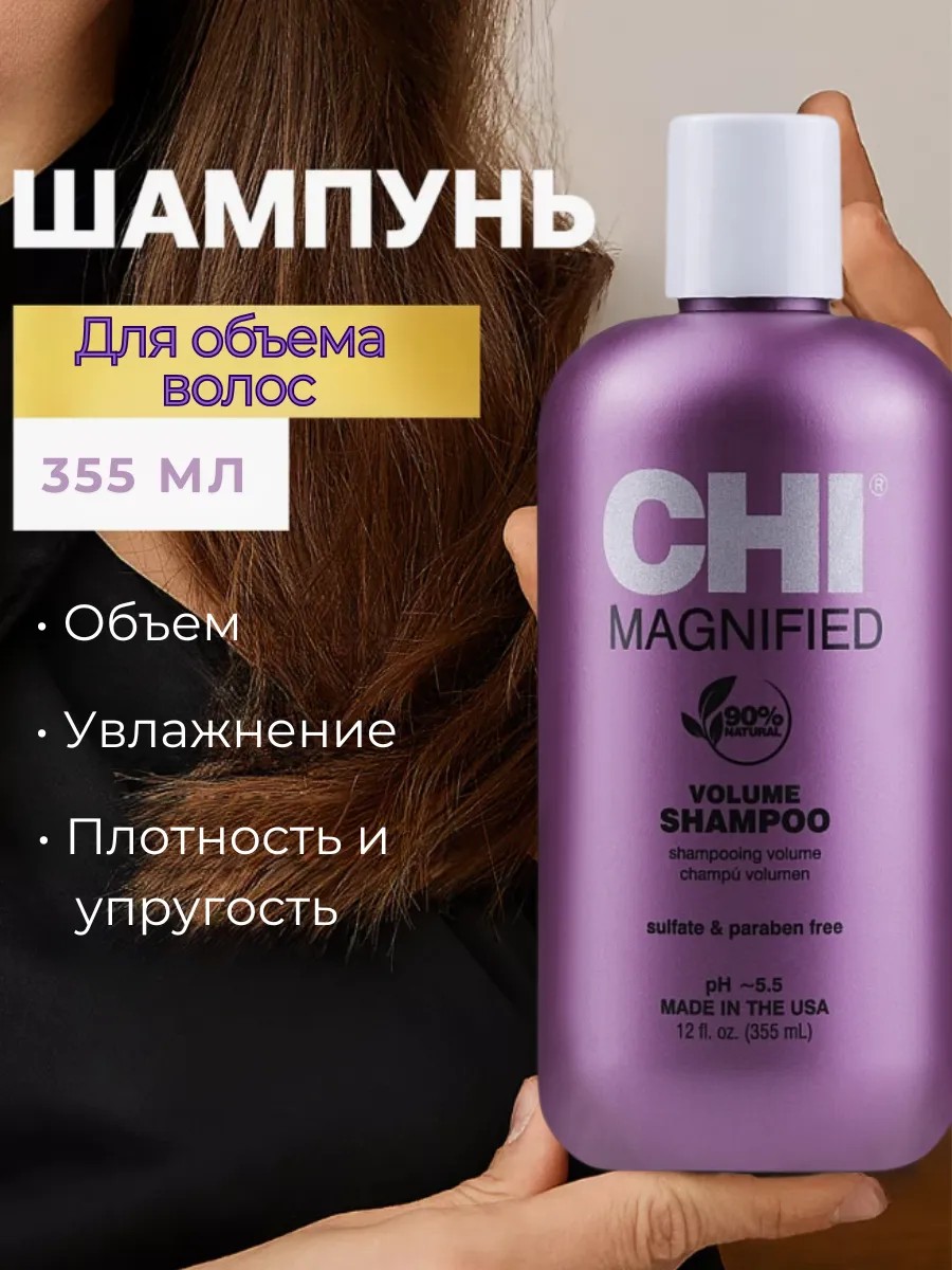 Выбирайте CHI Magnified Volume Shampoo, если хотите, чтобы ваши волосы выглядели густыми, объемными и ухоженными без лишних усилий.