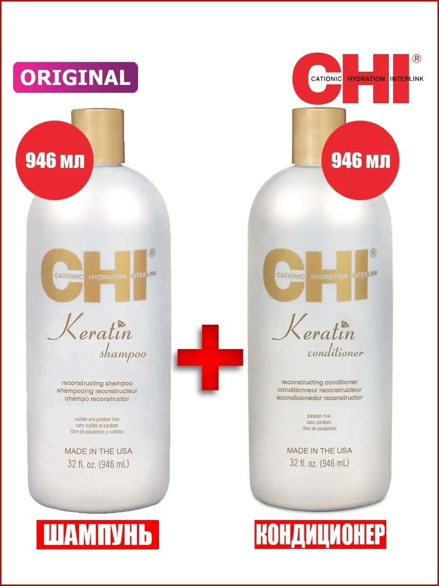 chi KERATIN Шампунь 946мл + Кондиционер 946мл Кератин